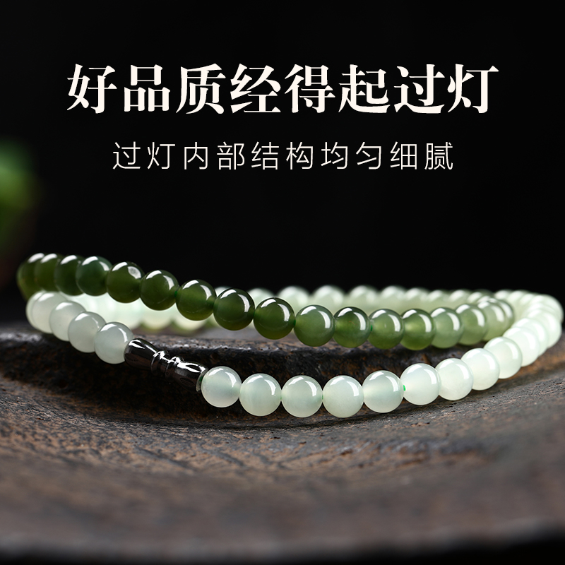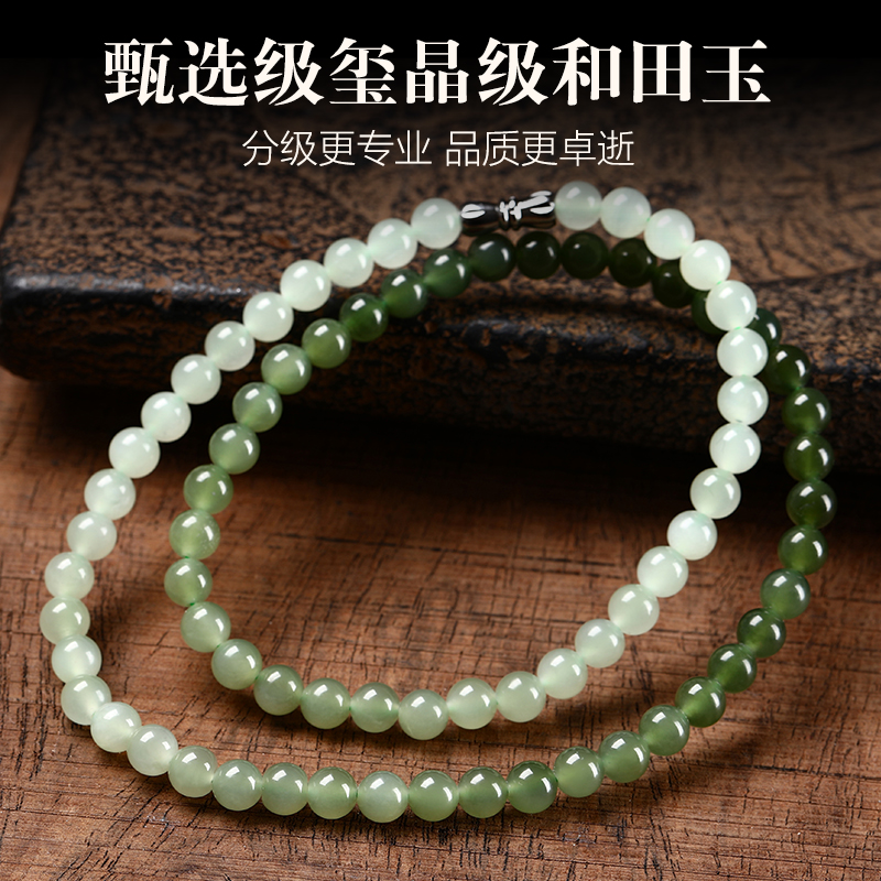保真和田玉晴水项链女款高冰渐变圆珠链子天然玉石珠链吊坠礼物