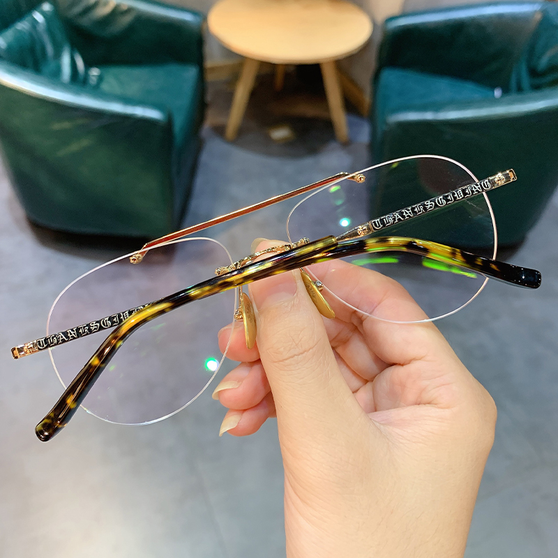 新品简丹萝心飞行员式眼镜架男女时尚百搭纯欲系无框素颜镜打孔