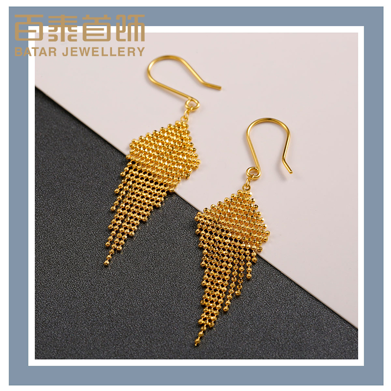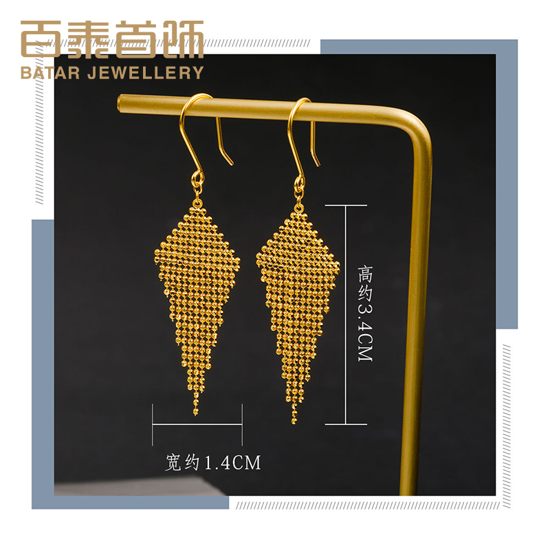 百泰流苏黄金耳环足金999耳钉气质长款菱形几何耳饰时尚金耳钩女