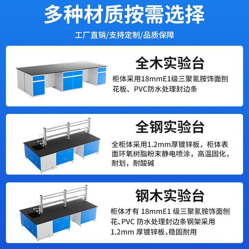 实验室钢木实验台全钢理化板学校试验边台中央操作台化学工作台子