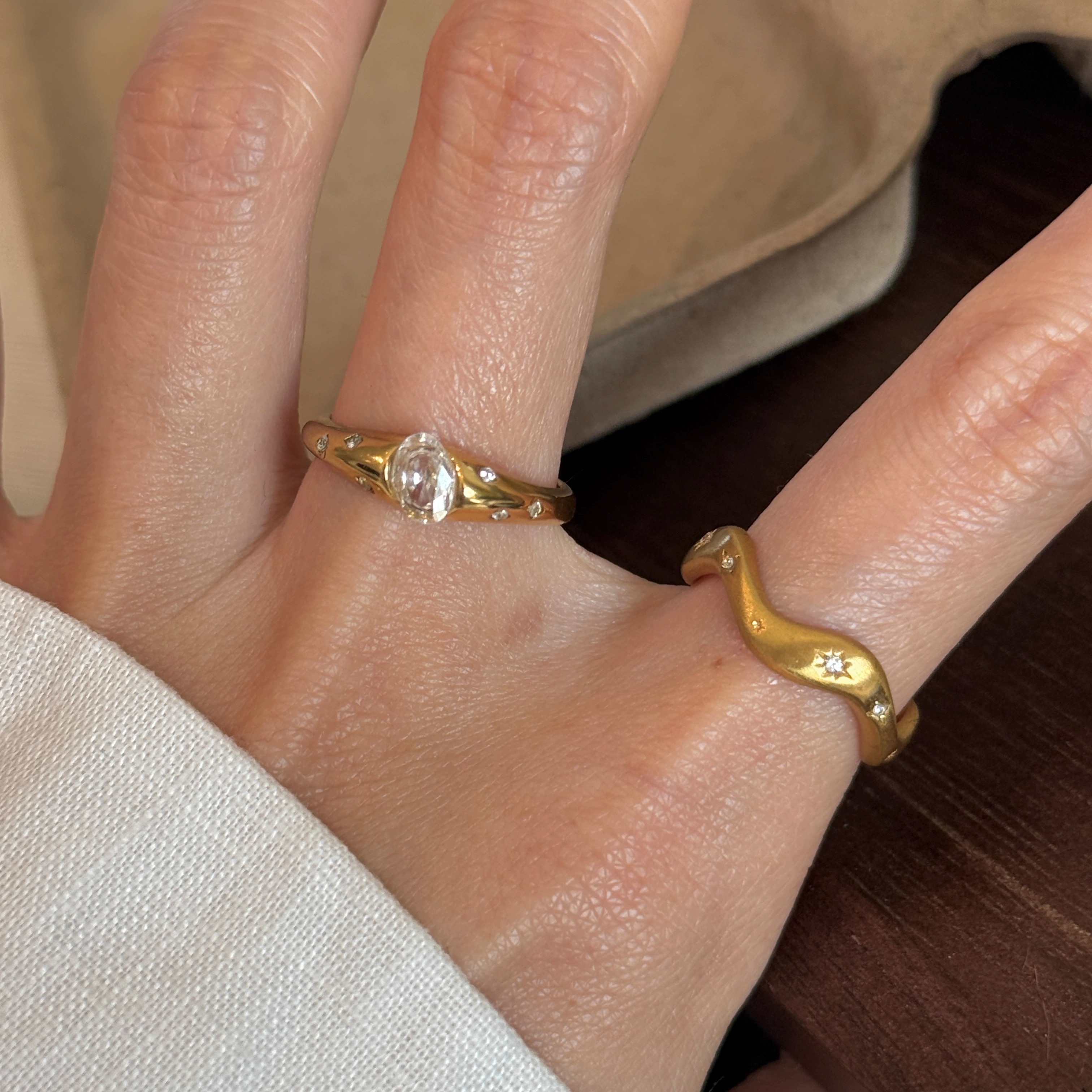 不掉色钛钢戒指女轻奢高级感食指戒小众设计镶钻波浪星星指环2025
