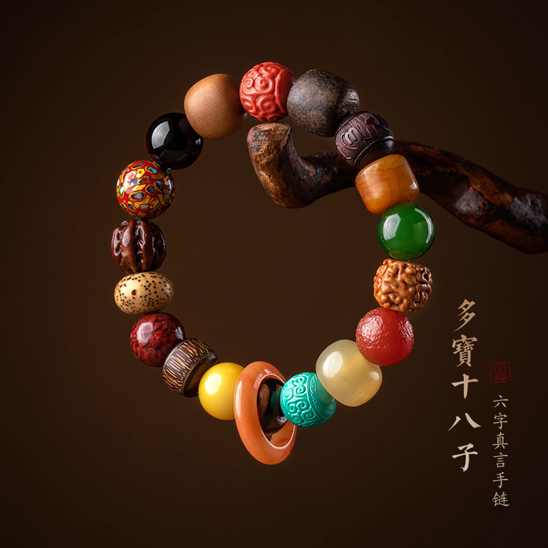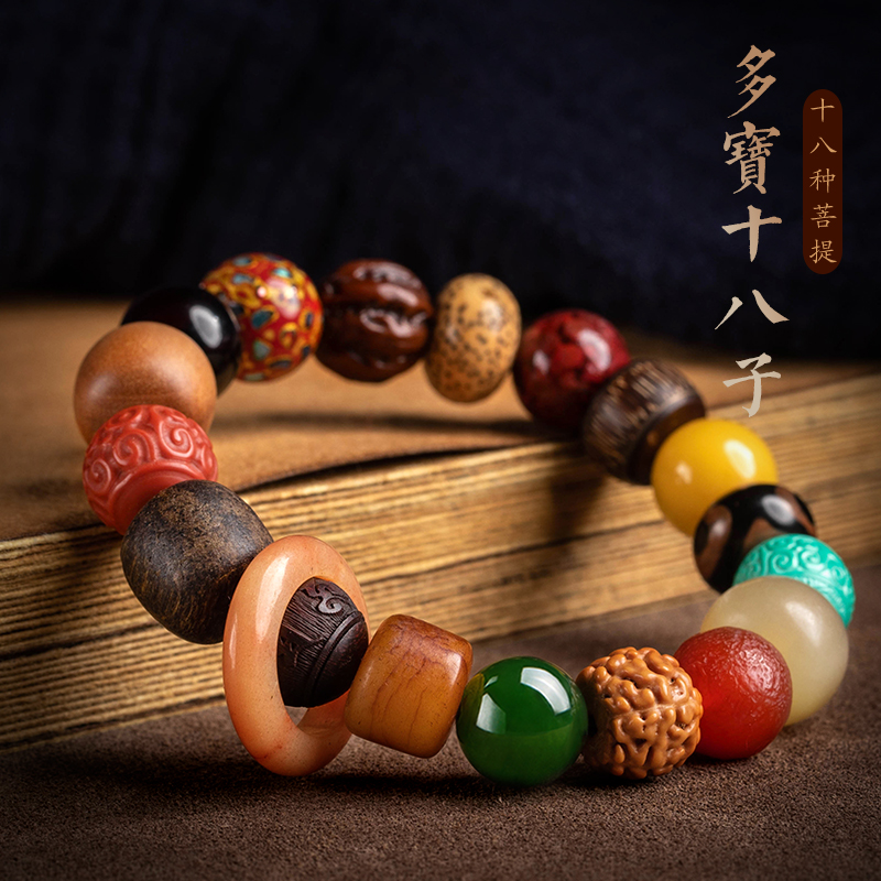 多宝十八子籽手串送男友礼物菩提和田玉蜜蜡玛瑙手链女佛珠盘文玩