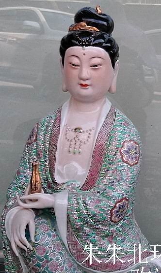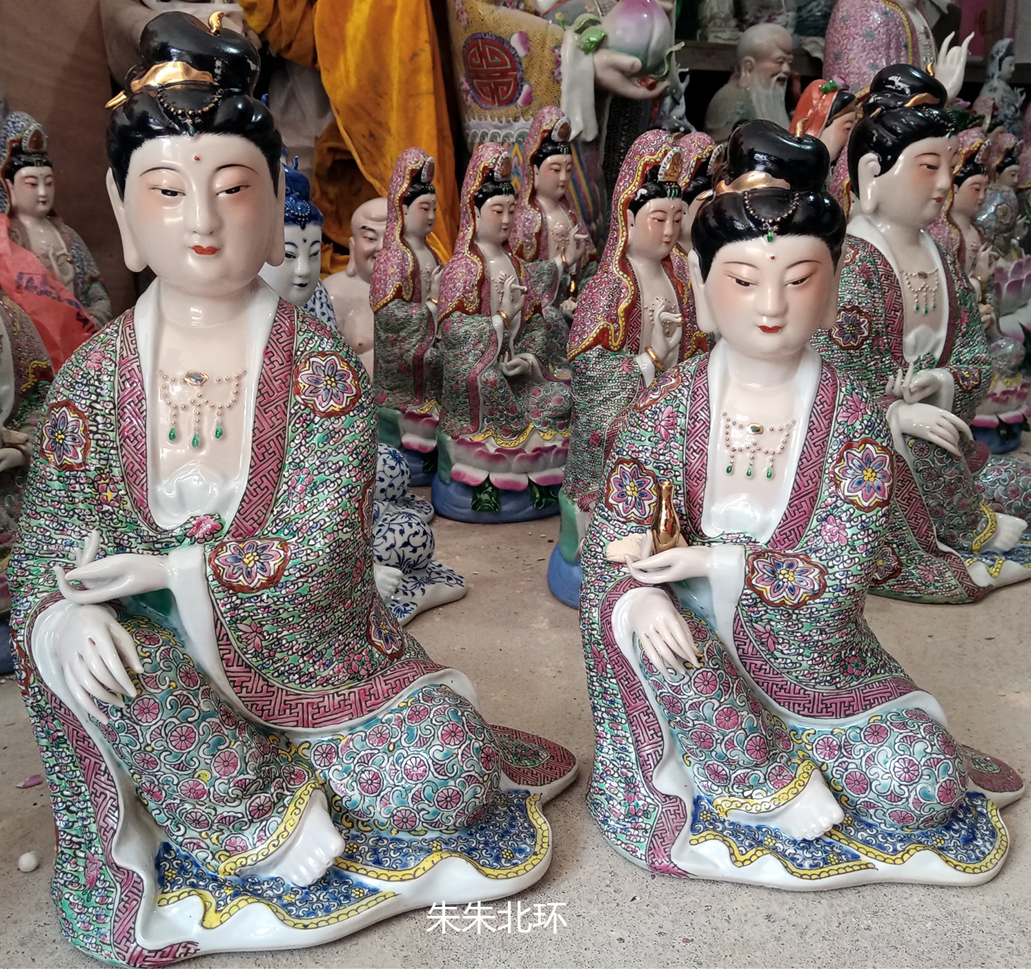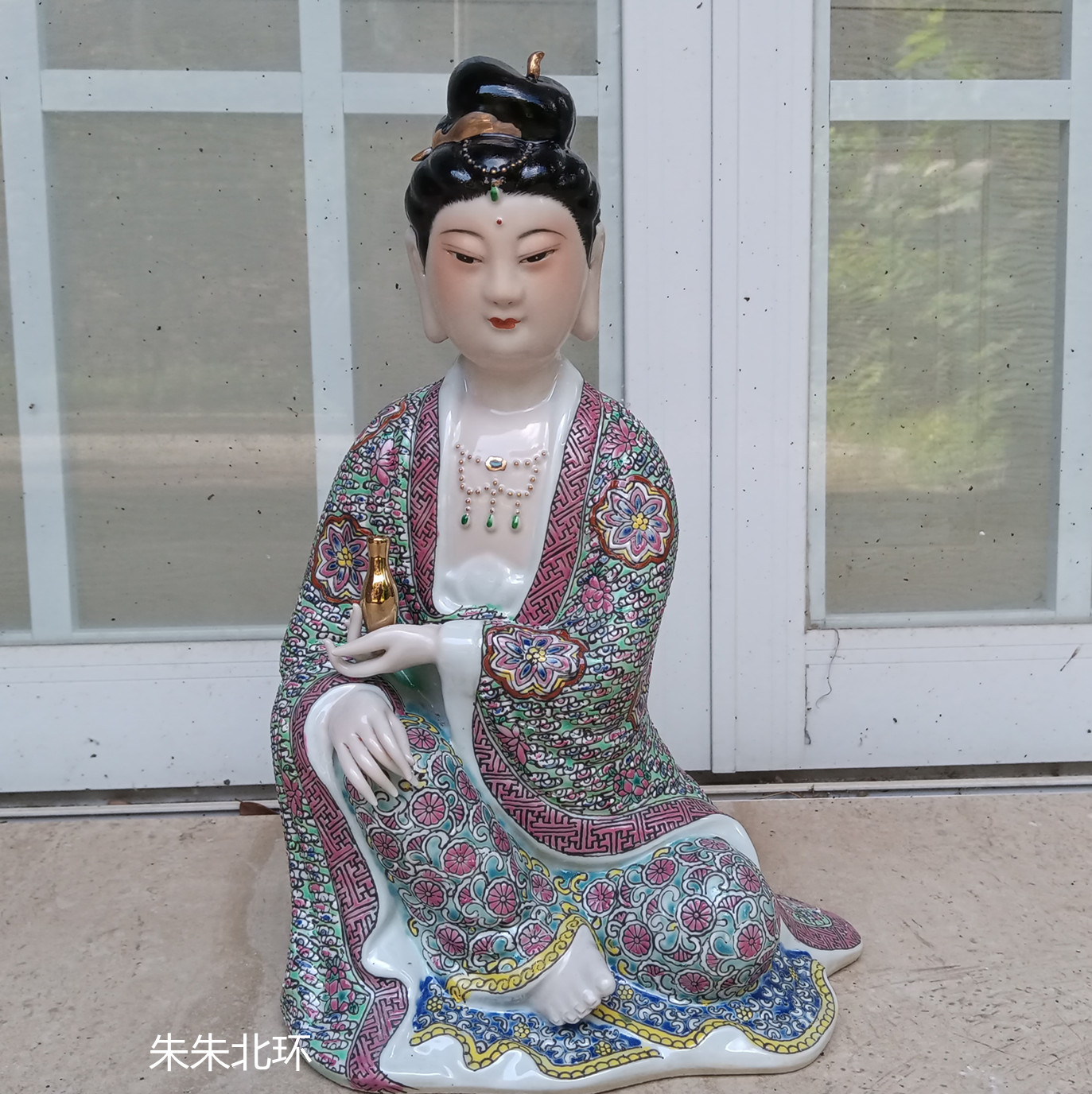 景德镇仿古粉彩绘陶瓷器观音菩萨供奉佛像摆件家用自在坐地观世音