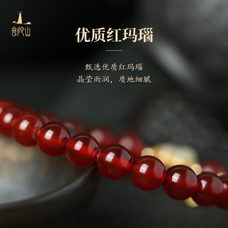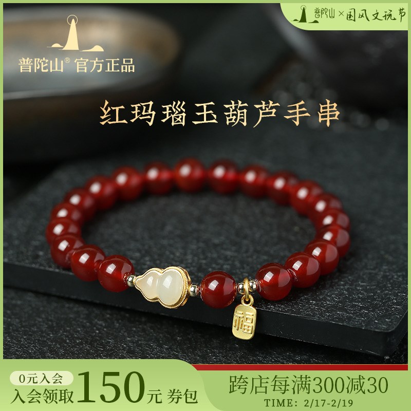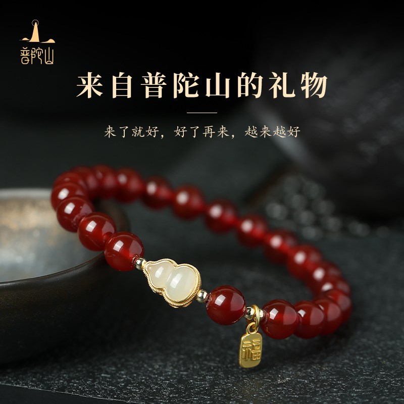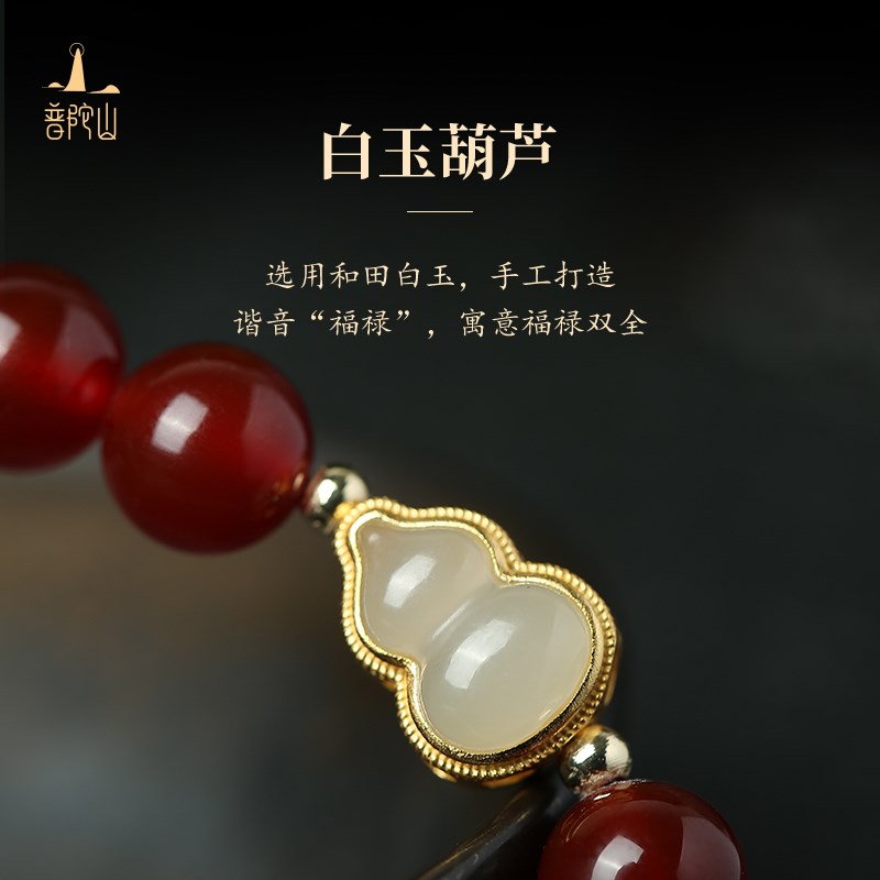 现货速发新品玛瑙手串生龙本命年红色串珠和田玉葫芦福禄手链礼物