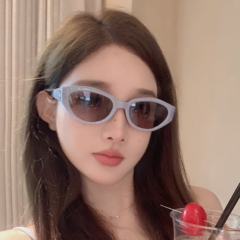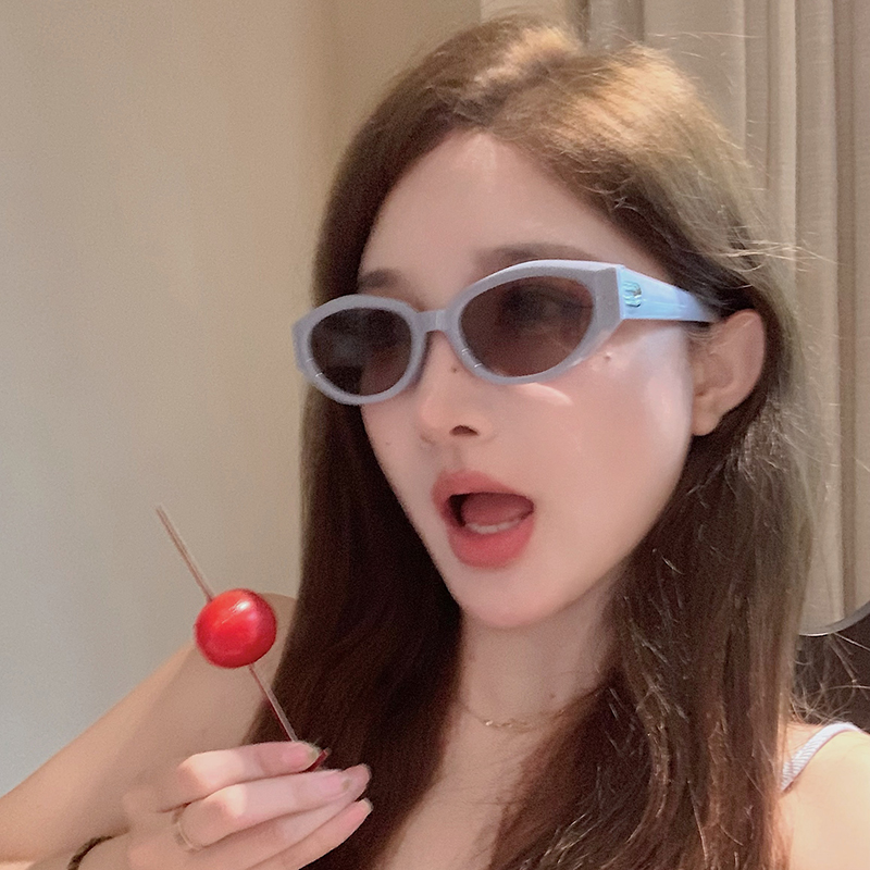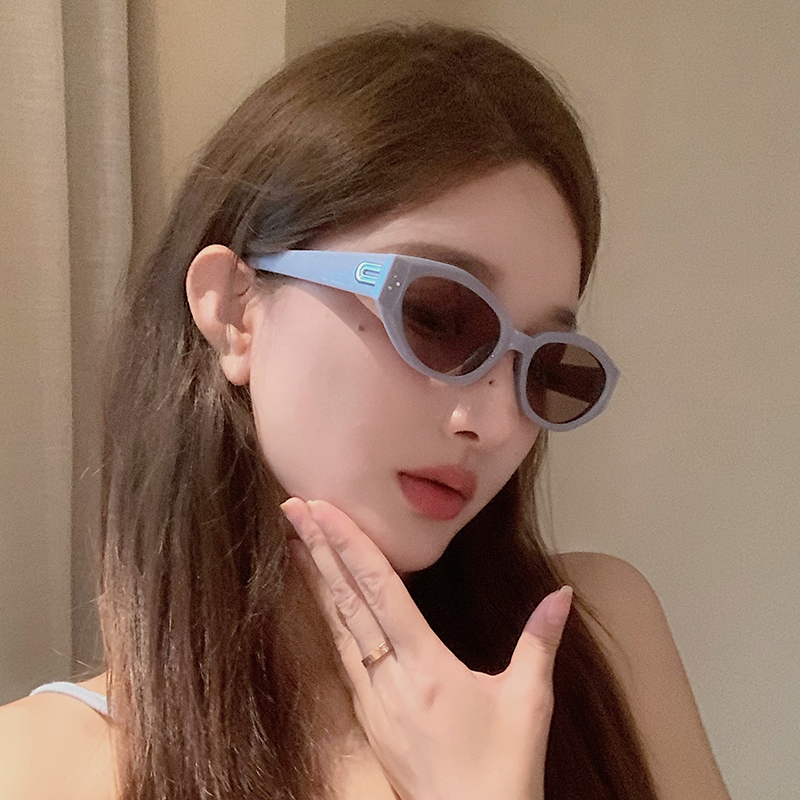 gm夏季猫眼蓝框多巴胺太阳镜女方圆脸显瘦遮阳沙滩墨镜2024新款男