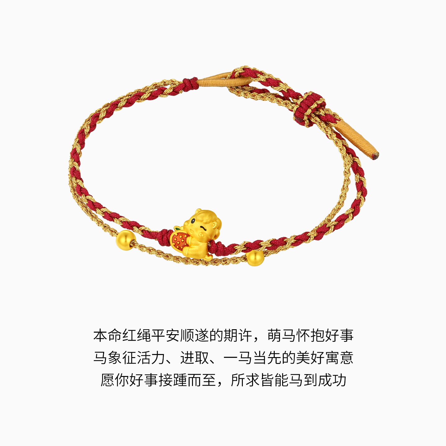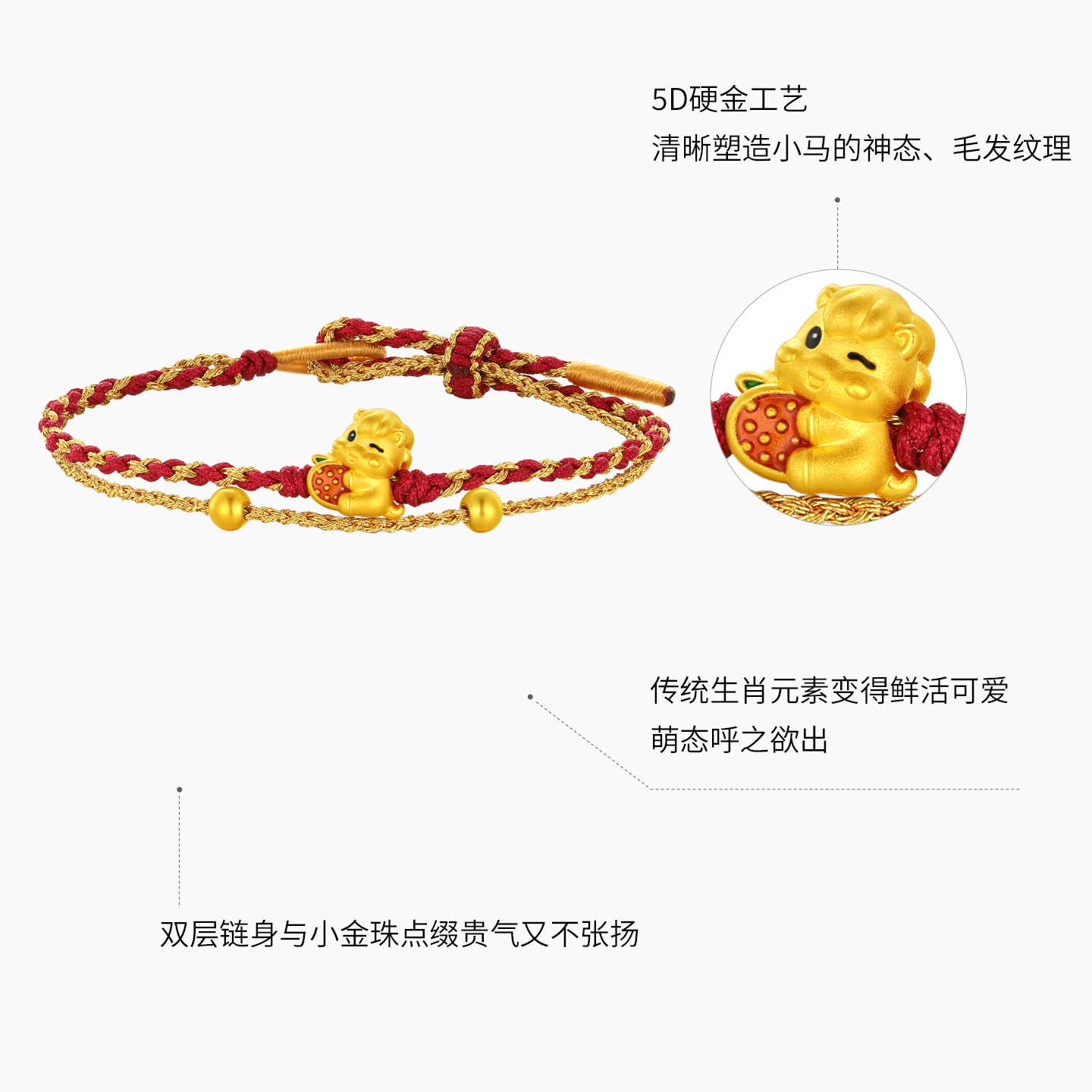 潮宏基好事发生足金手链黄金手绳红绳5D硬金手饰生肖马本命年礼物