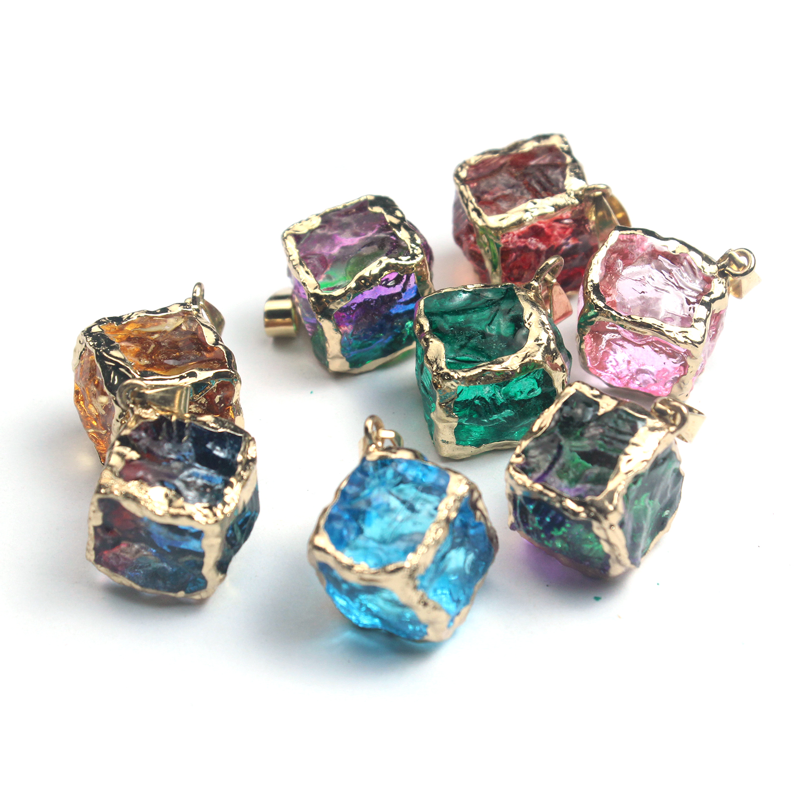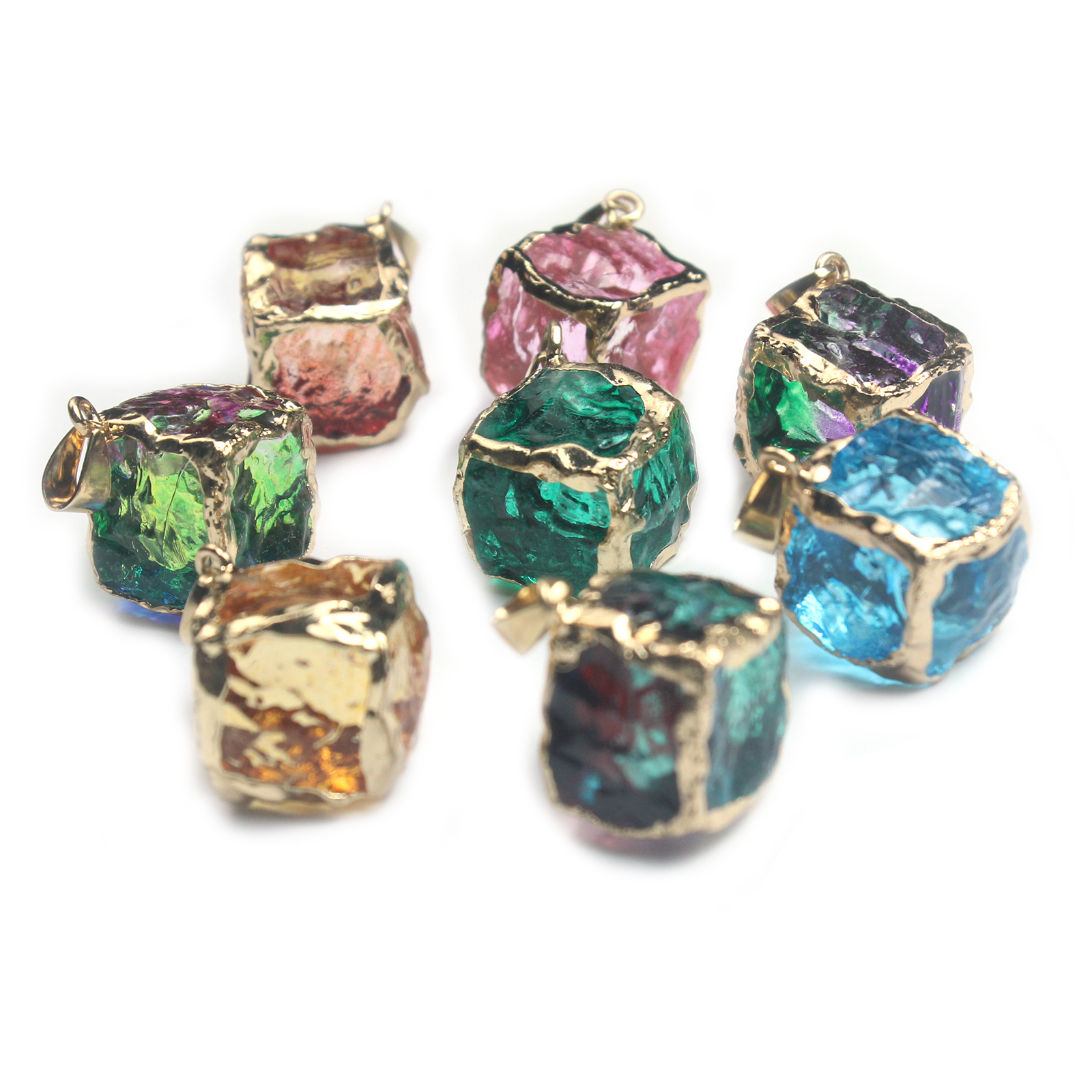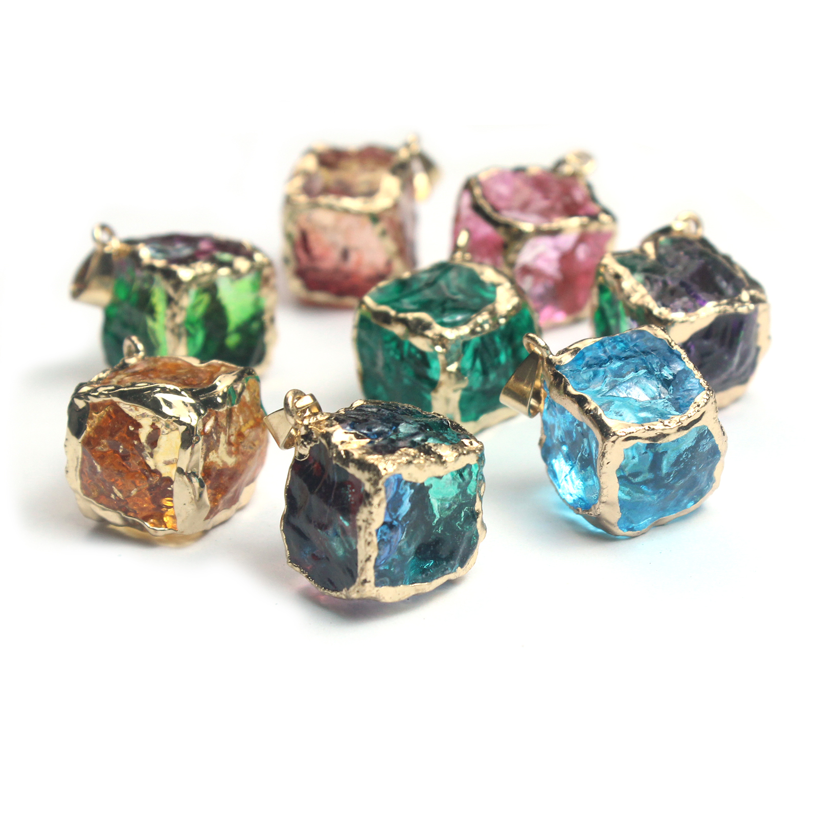 彩色水晶冰块正方体方糖石头玻璃项链DIY手工串珠配件饰品吊坠