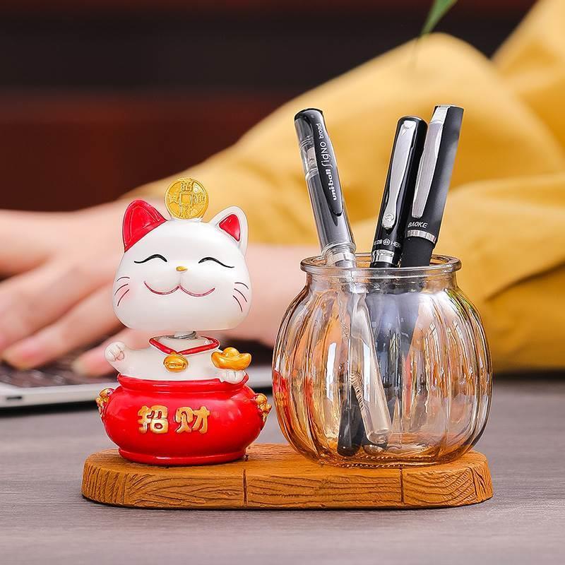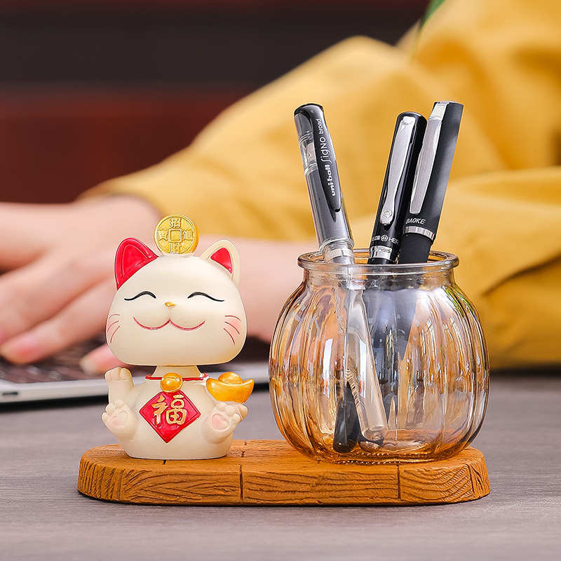 蕊杰可爱笔筒创意时尚中国风办公室书房装饰店铺收银台桌面招财猫
