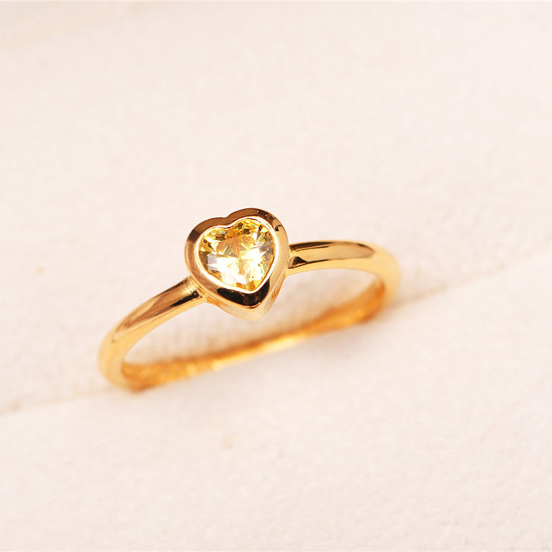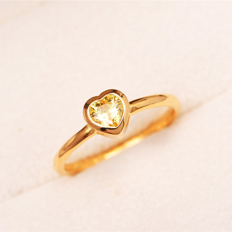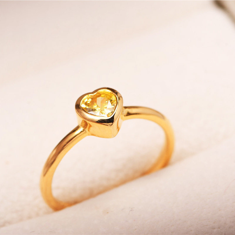 韩国优雅款简约50分半克拉爱心黄色水晶戒指仿真锆石钻戒s925纯银