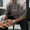 原创中性冷淡风古巴链港风复古简约字母方牌钛钢不掉色项链情侣潮