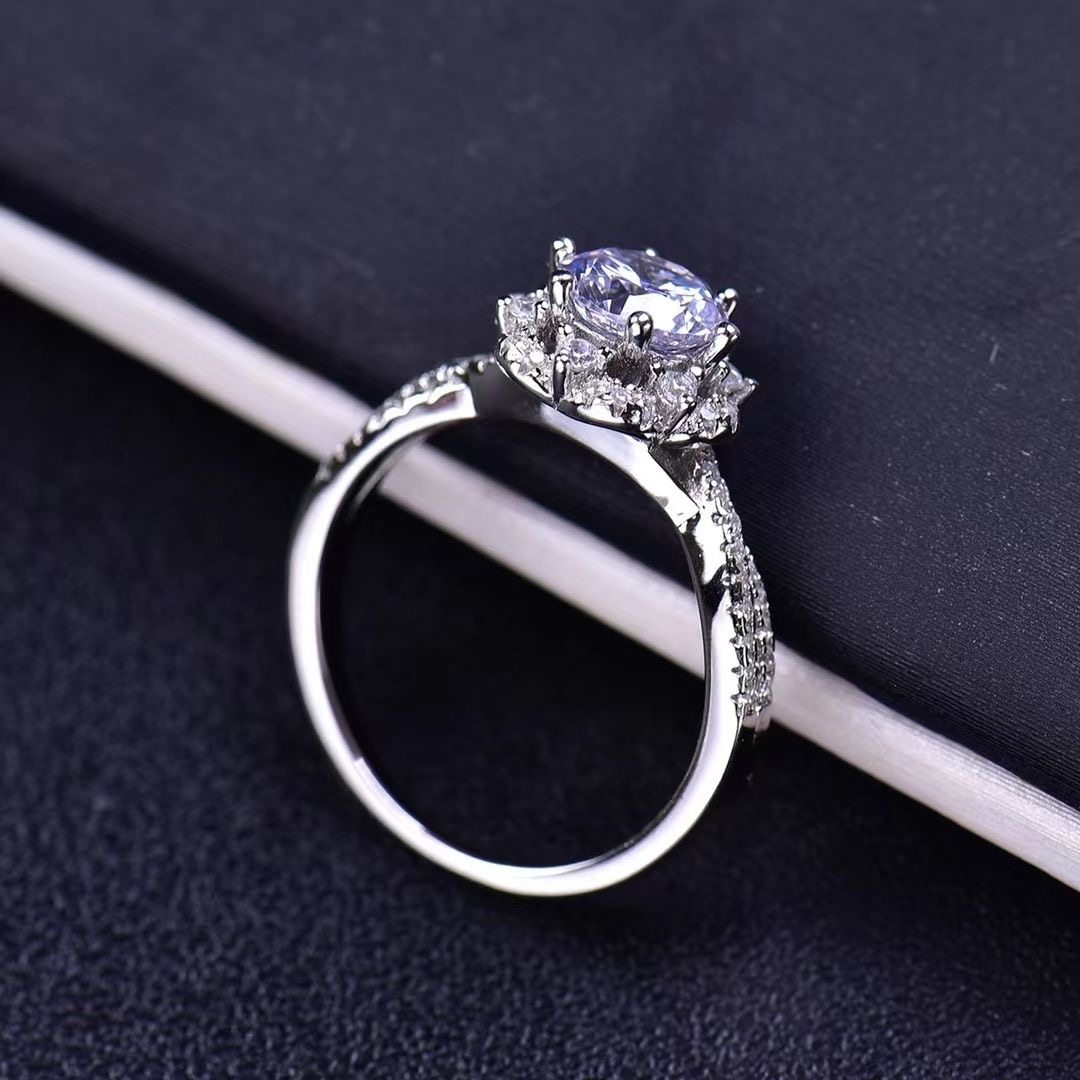 进口D色莫桑石钻戒s925纯银镶嵌求婚女戒指艾莎公主新款正品时尚