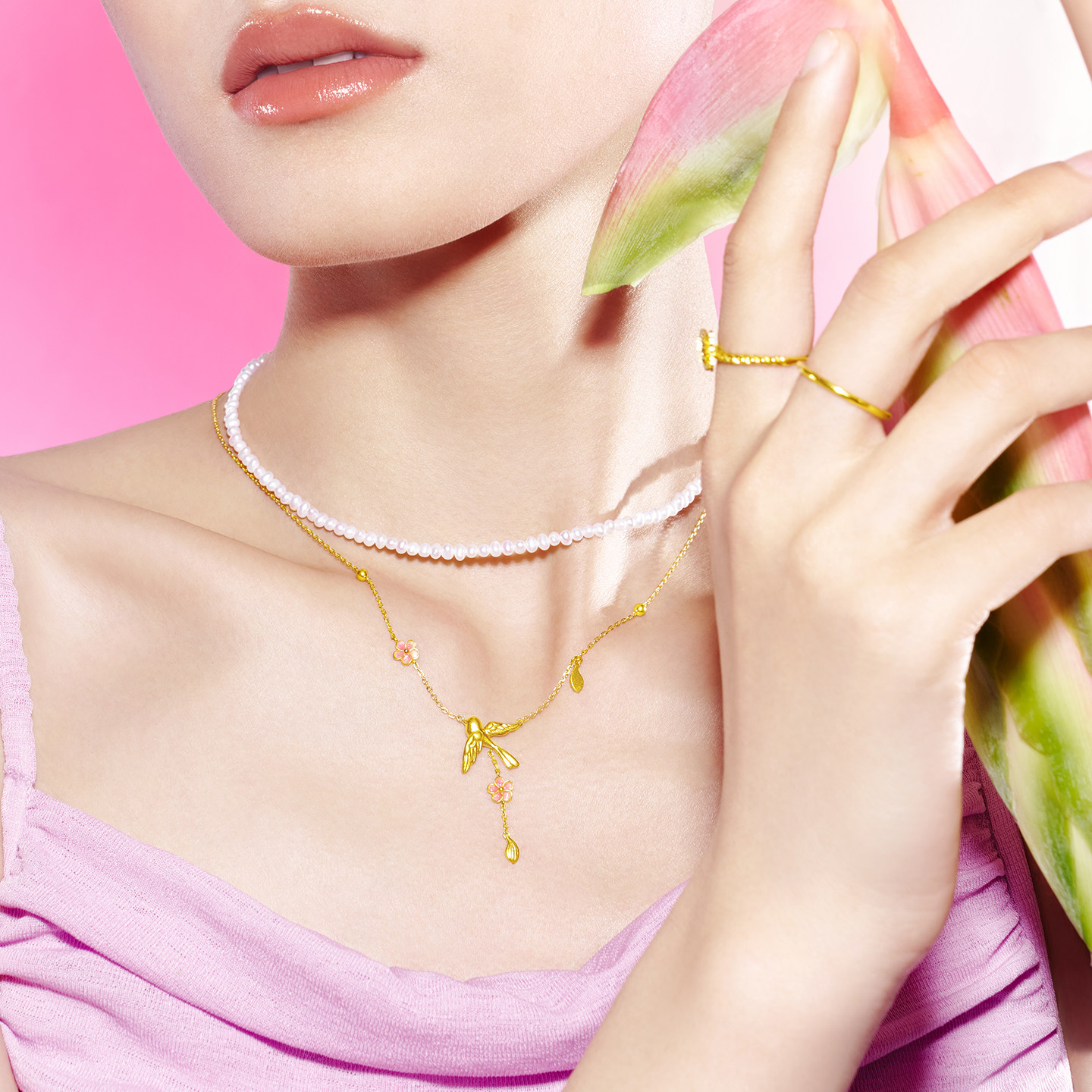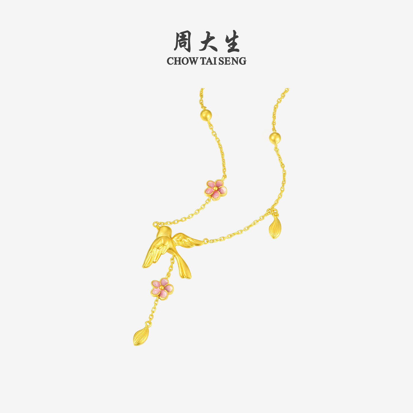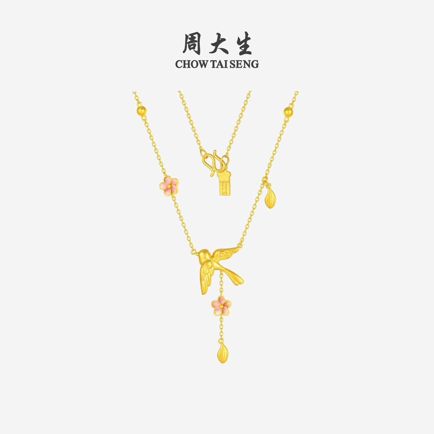 周大生国家宝藏联名|十二花神喜上梅梢黄金项链女足金锁骨链吊坠