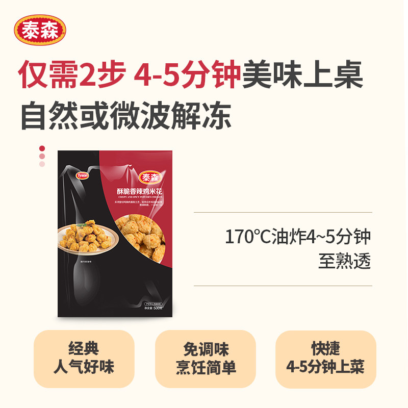 Tyson/泰森酥脆香辣鸡米花500g*3方便快捷微波鸡肉劲爆鸡米花冷冻