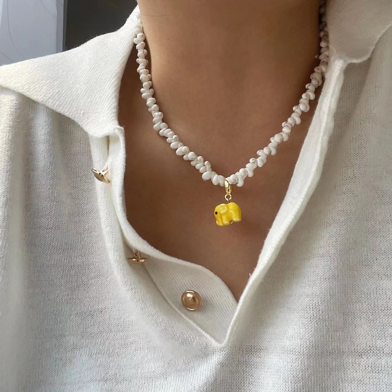 sunball 《可爱的象》原创新度假风可爱小象贝项链壳复古气质小众