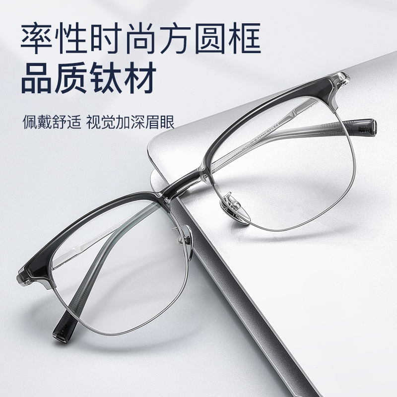超轻纯钛半框复古眉线架眼镜框近视眼镜防蓝光近视专用镜框男士潮