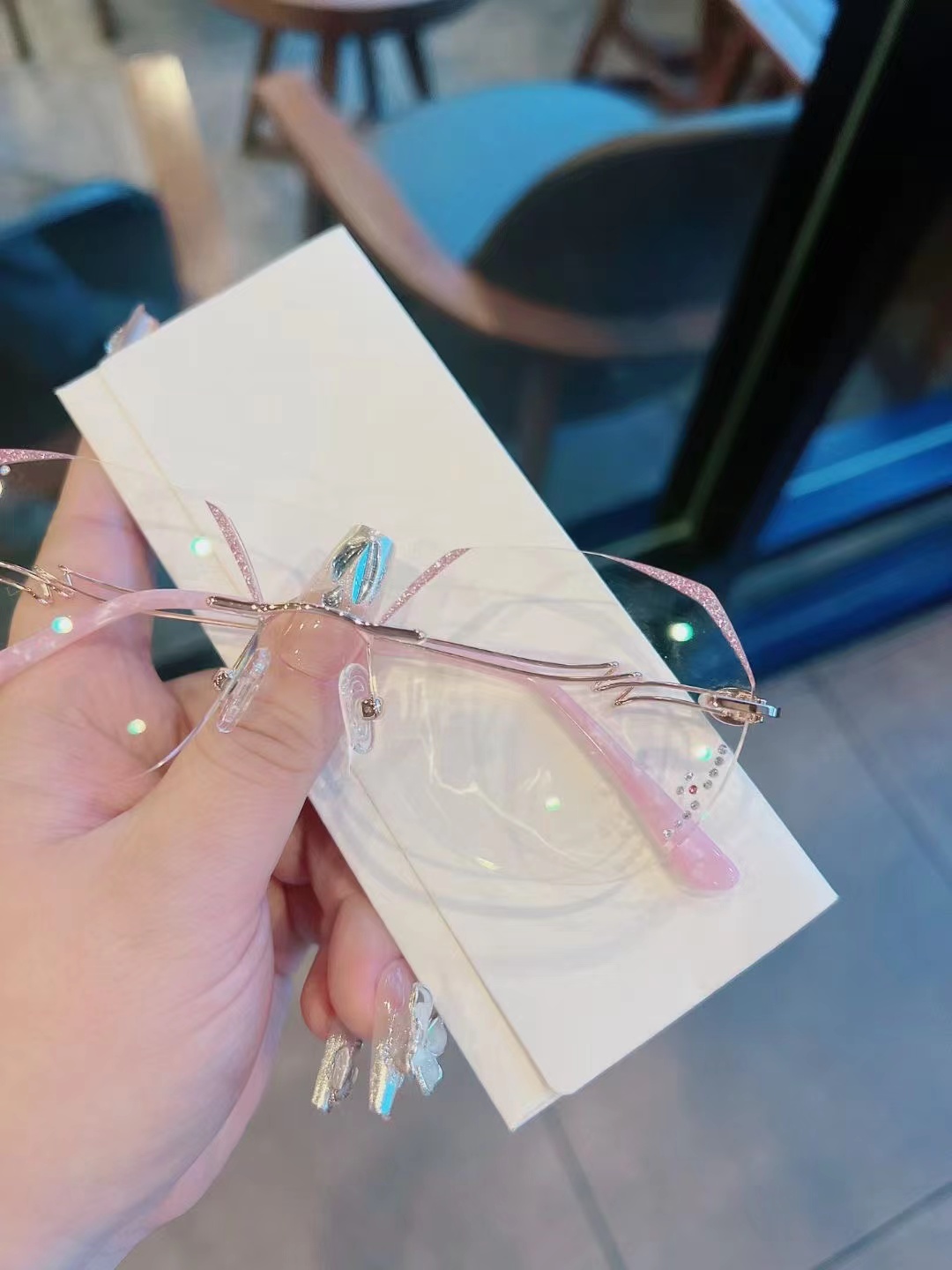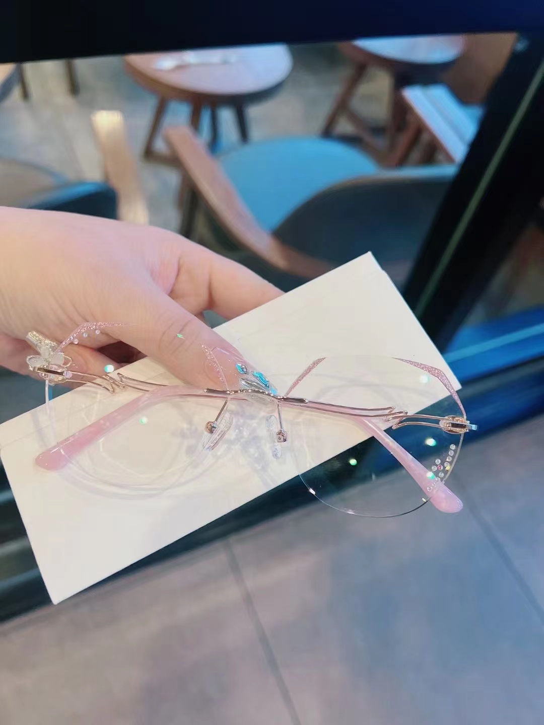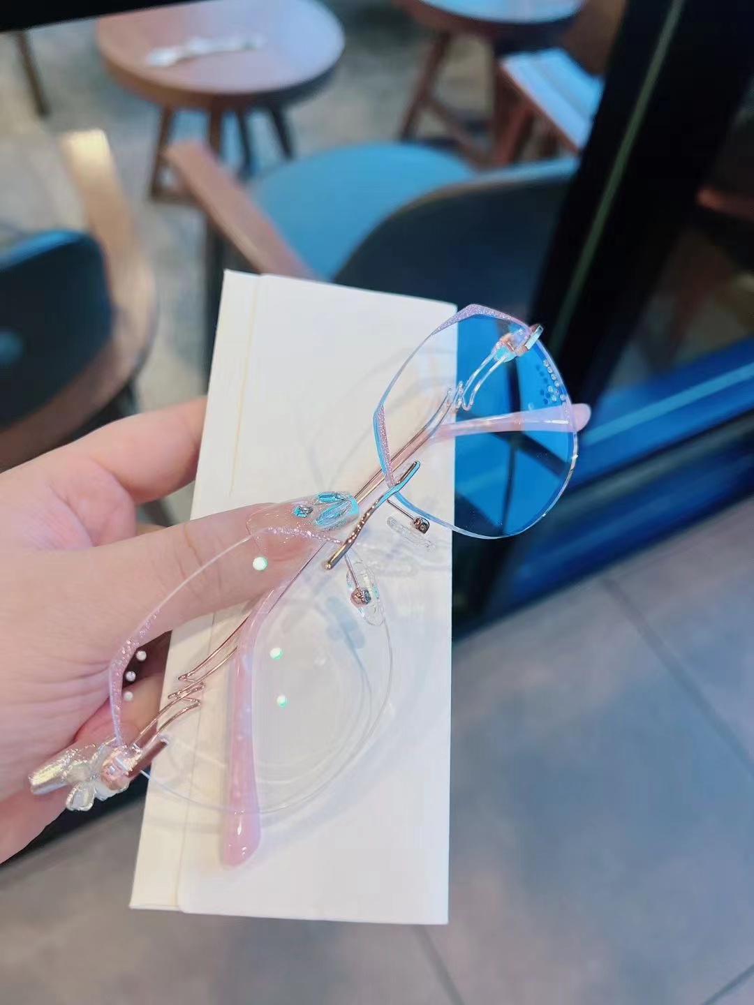 无框眼镜近视女镜片镶边无框素颜度数散光防蓝光防辐射变色超轻架