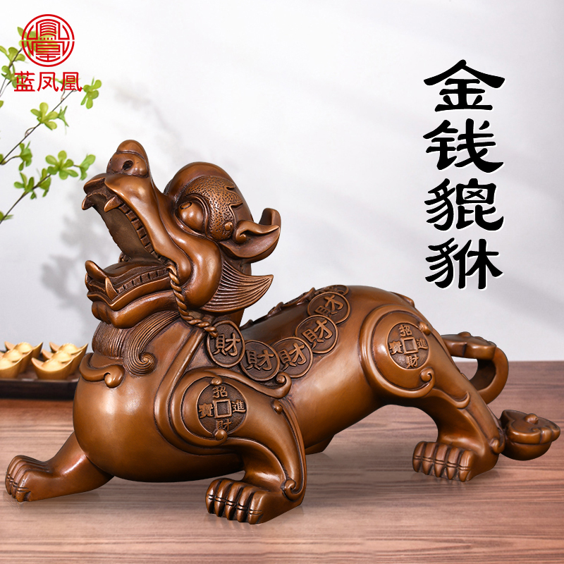 紫铜貔貅摆件纯铜金钱貔貅公母一对客厅招办公室酒柜装饰品财礼品