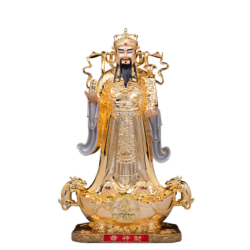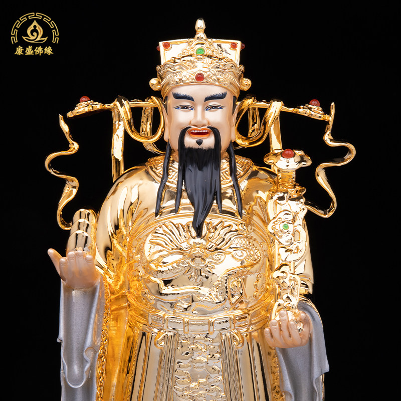 站财神爷神像摆件黄铜著金文财神站像招财供奉比干财神开业送礼品