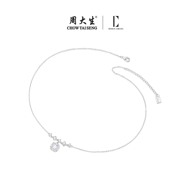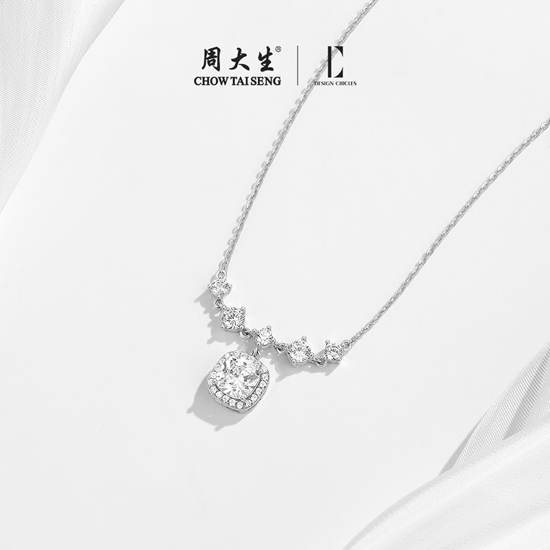 周大生DC闪光冰糖项链轻奢小众纯银S925方糖百搭颈链送生日礼物