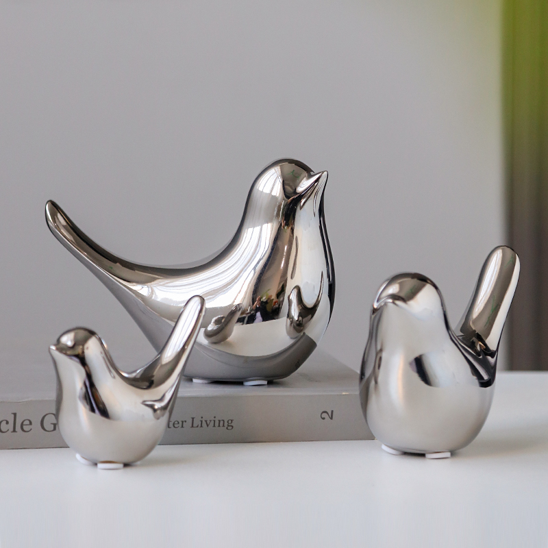 电镀银色小鸟陶瓷网红桌面摆件轻奢高档酒柜茶几迷你小装饰样板间