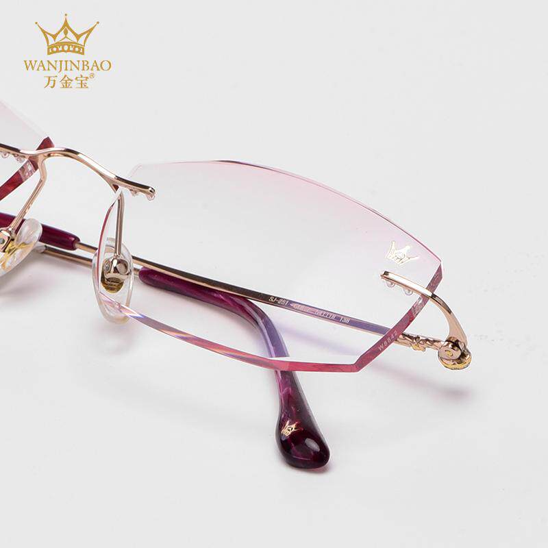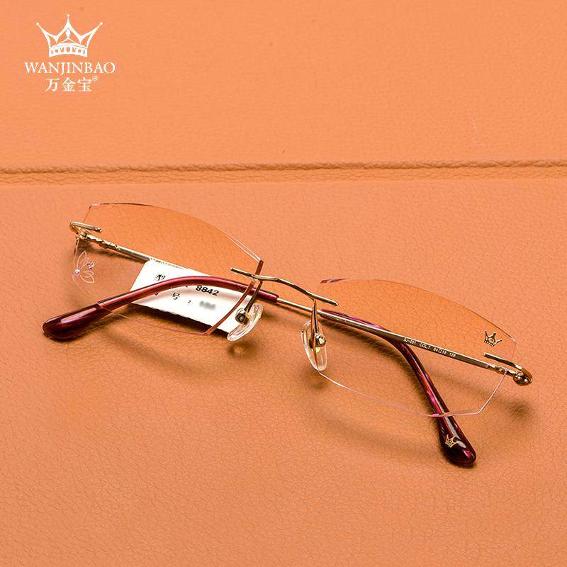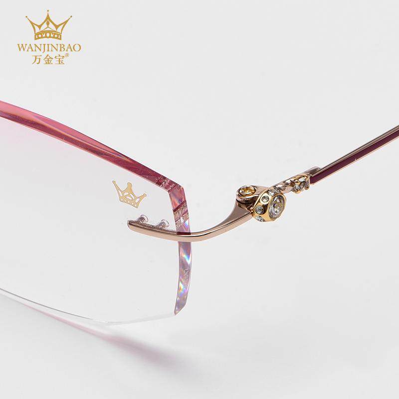 万金宝超薄无框近视蓝光眼镜架女士彩色钻石切边优雅高端定制8842