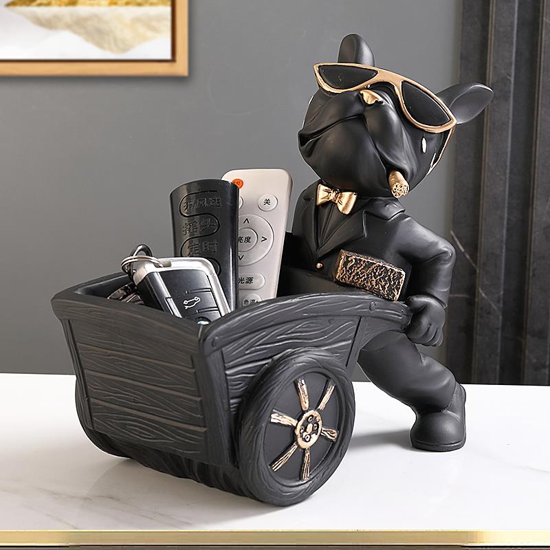 入户玄关放钥匙收纳摆件鞋柜托盘现代轻奢风客厅进门大嘴狗装饰品