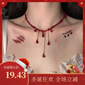 万圣节复古红色滴血流苏项链小众设计感串珠锁骨链高级感哥特颈链