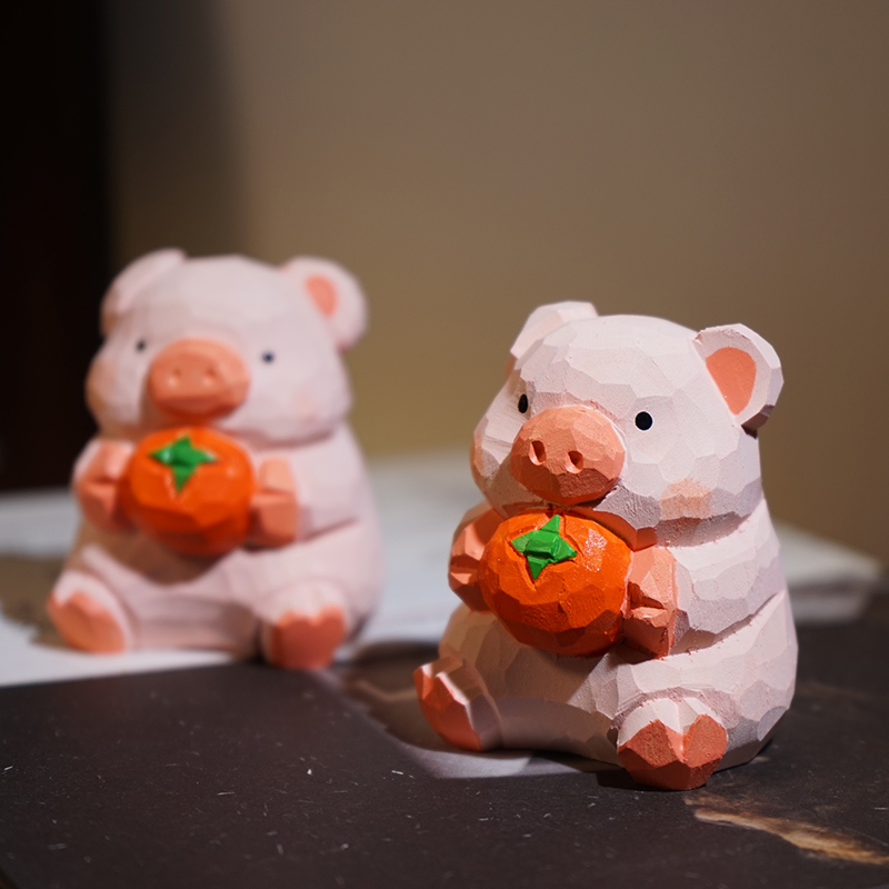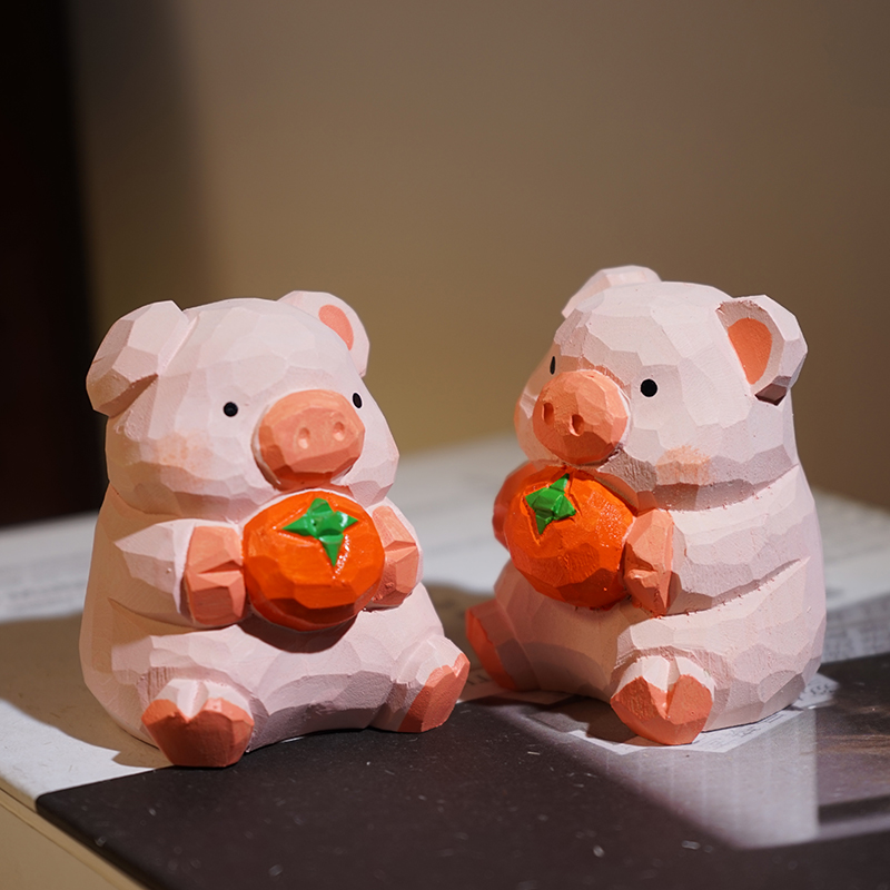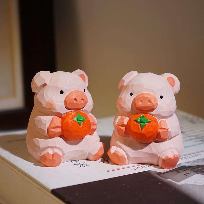 “猪柿顺利”手工木雕小摆件可爱柿子猪办公桌面装饰品治愈系礼物