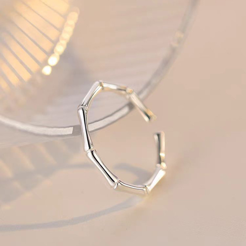 简约竹节开口戒指女小众设计小清新气质指环冷淡风食指戒