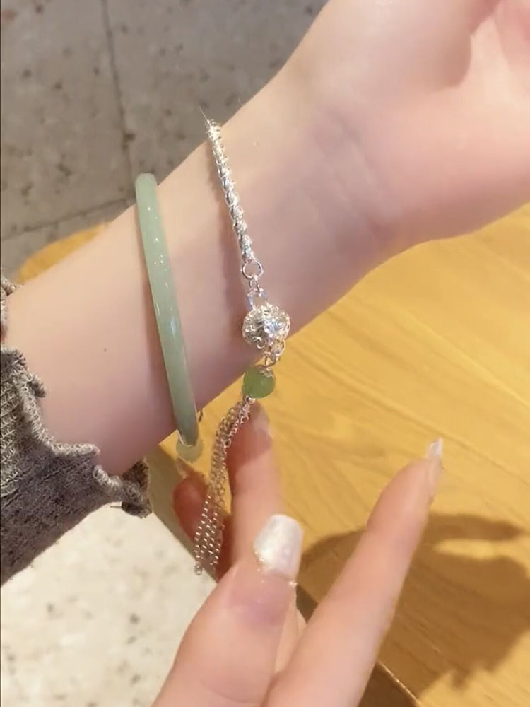 新中式原创绿色银色手镯小众设计古风复古高级感手环手链流苏手饰