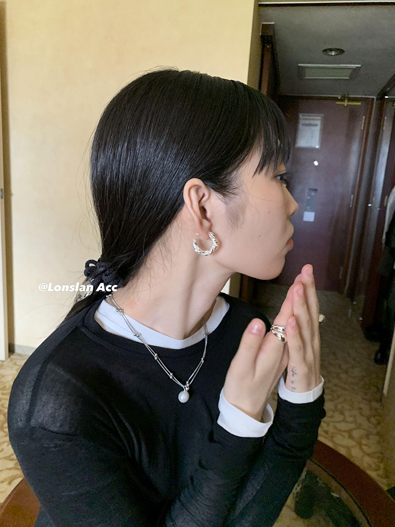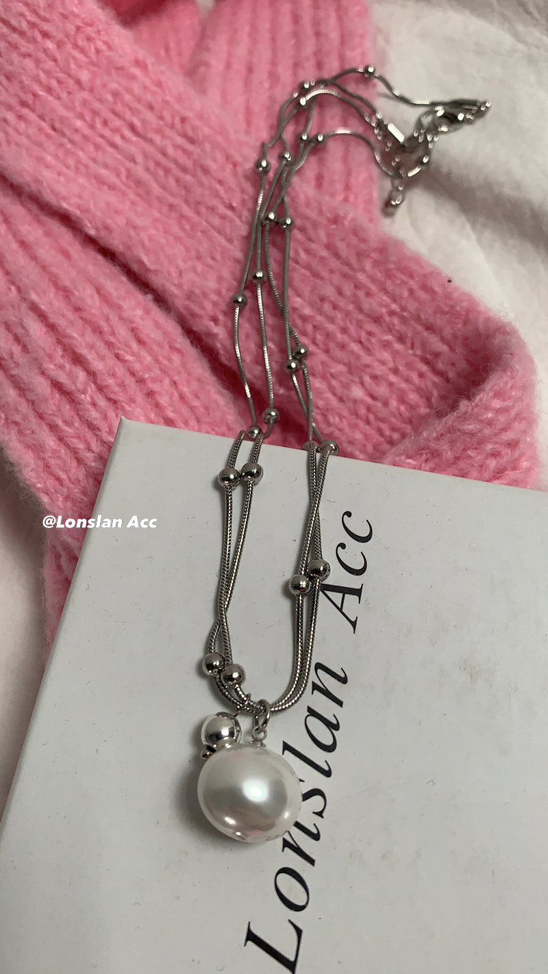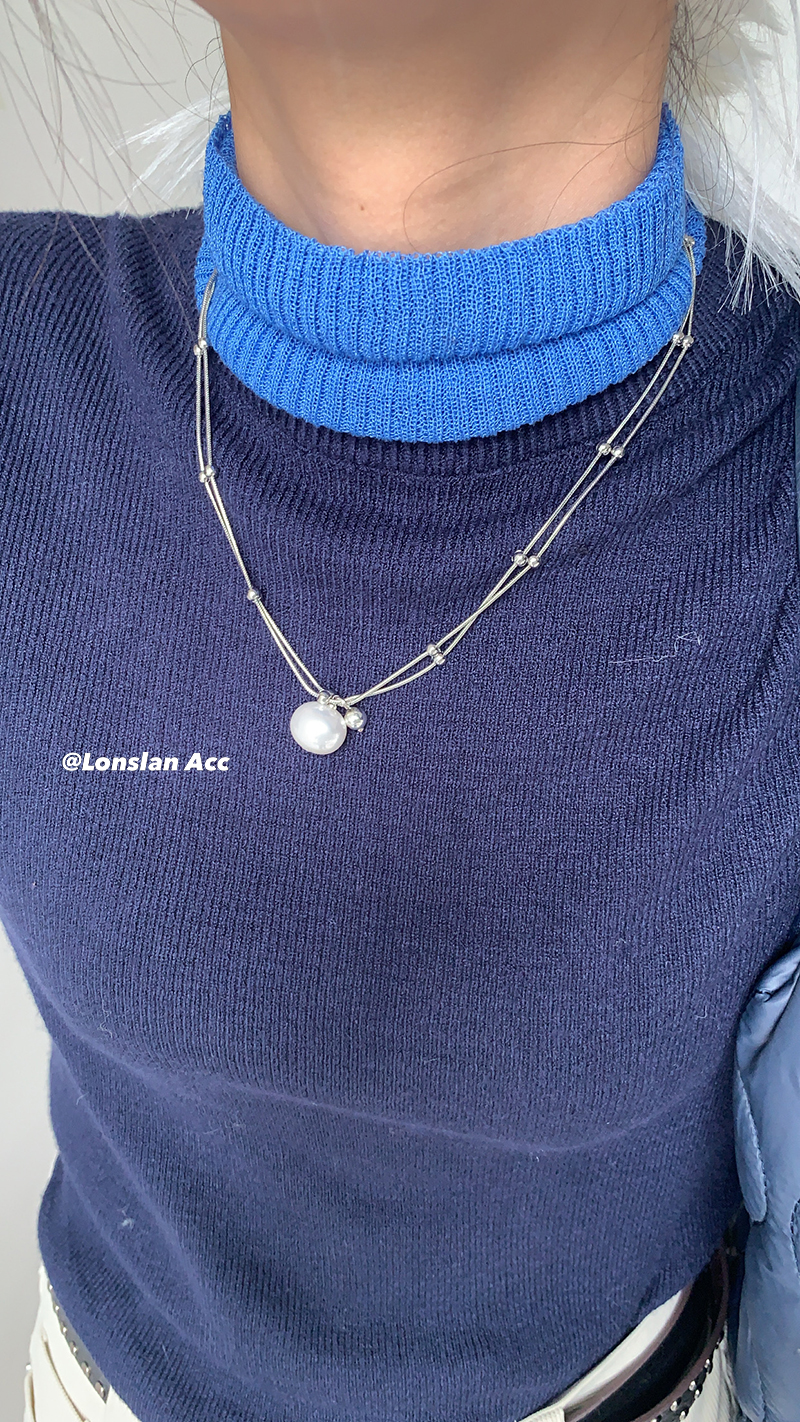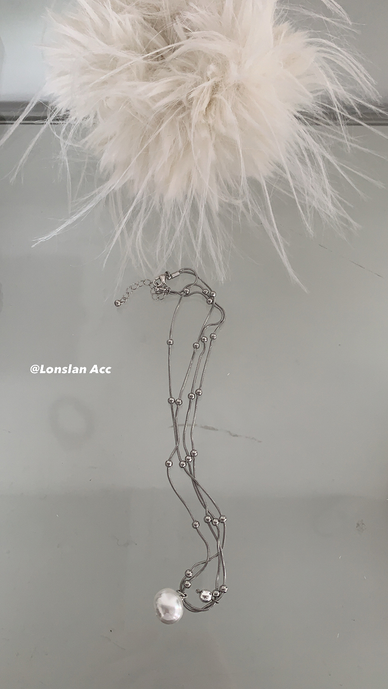 LONSLAN ACC 时髦高级白色珍珠吊坠叠层气质项链