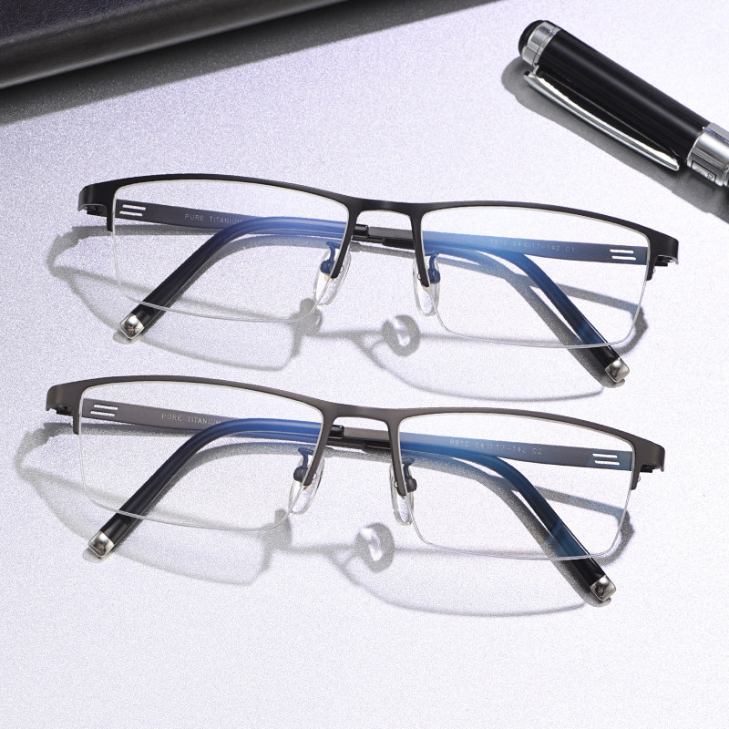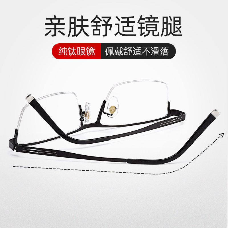 近视眼镜男纯钛商务半框眼睛框架可配有度数防蓝光变色散光近视镜