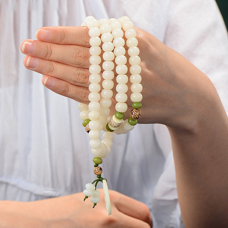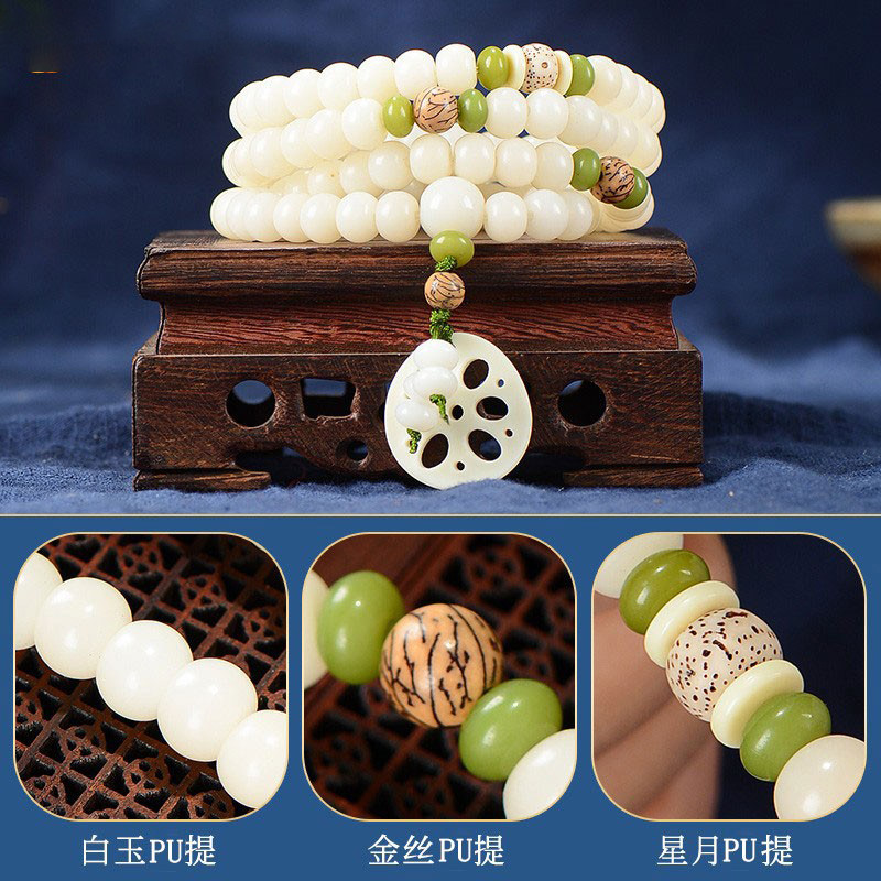 108颗白玉菩提根佛珠手串正月手链男女文玩项链情侣手饰品