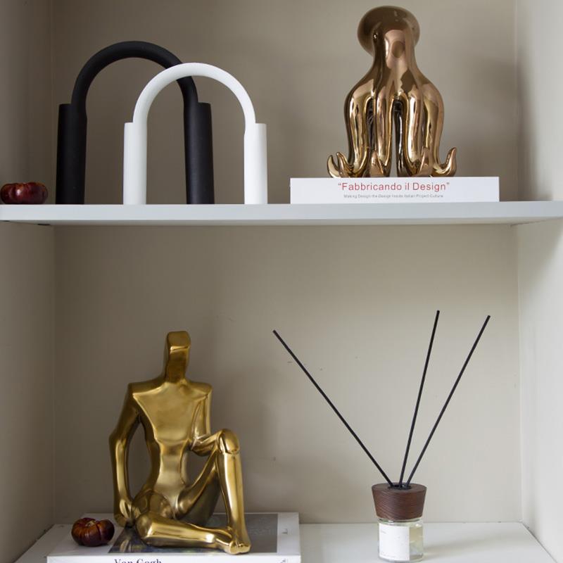 现代轻奢黑金色抽象艺术陶瓷雕塑客厅意式法式高级感软装饰大摆件
