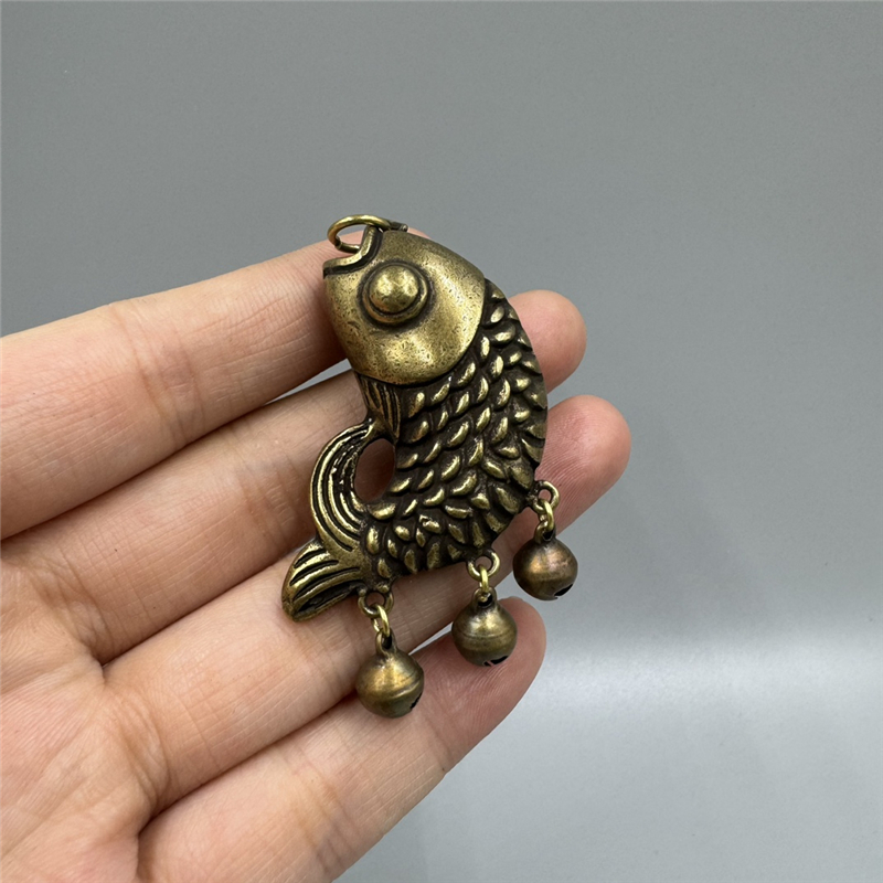 纯铜鲤鱼小挂件黄铜小鱼儿铜铃铛吊坠小摆件年年有余钥匙扣工艺品