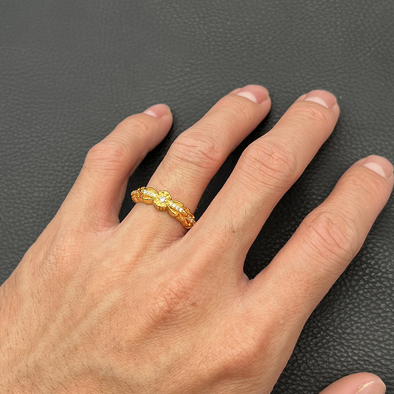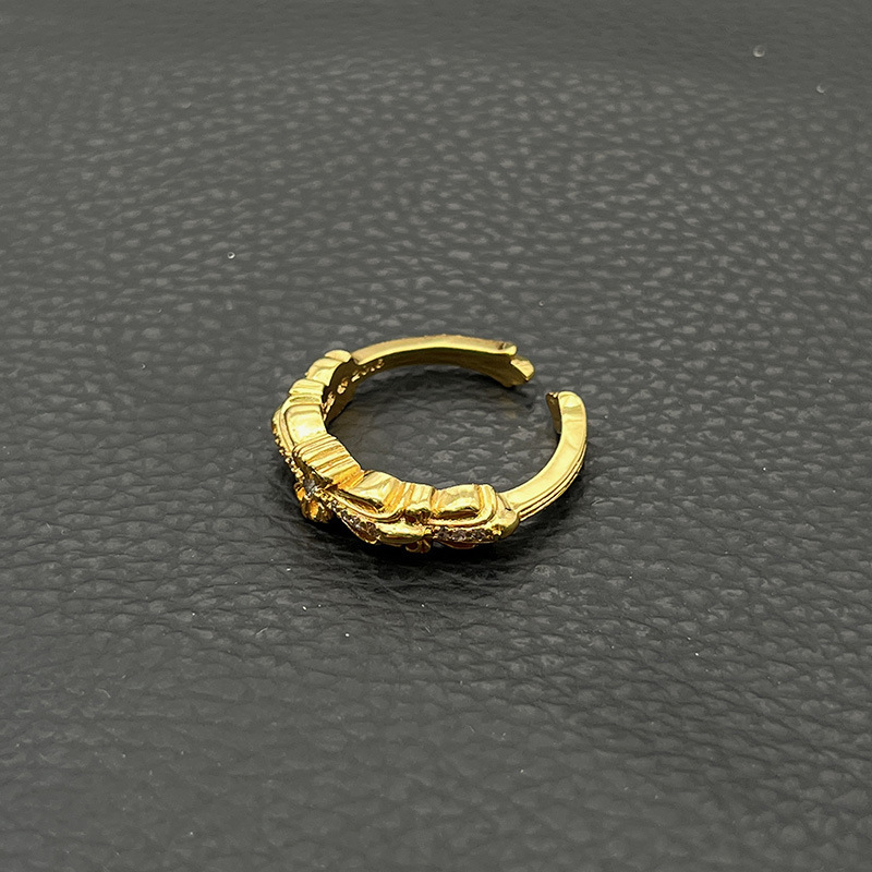 ODEK高级感金色镶钻开口窄版十字花戒指男女指环经典潮牌不掉色