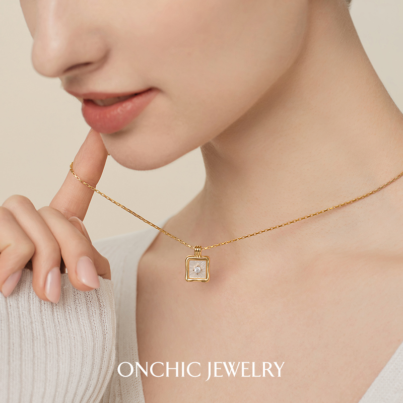 明星同款Onchic天然贝母项链女高级感轻奢小众贝雕气质锁骨链百搭