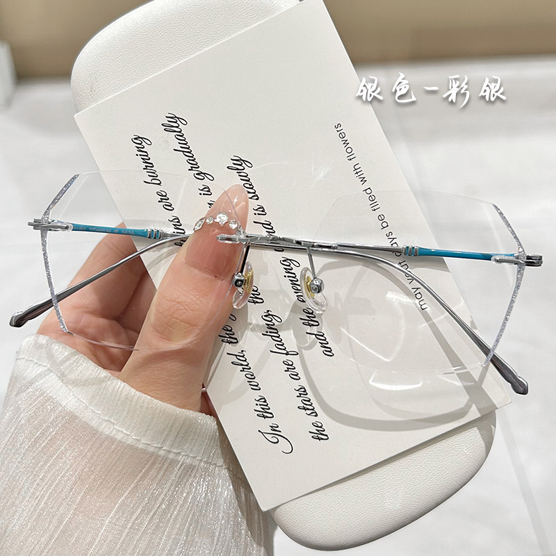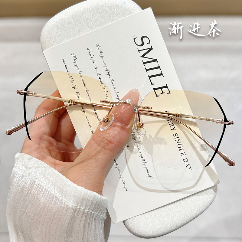 纯钛无边框近视眼镜女韩版潮网上可配度数大脸显瘦素颜纯欲平光镜