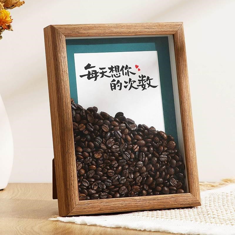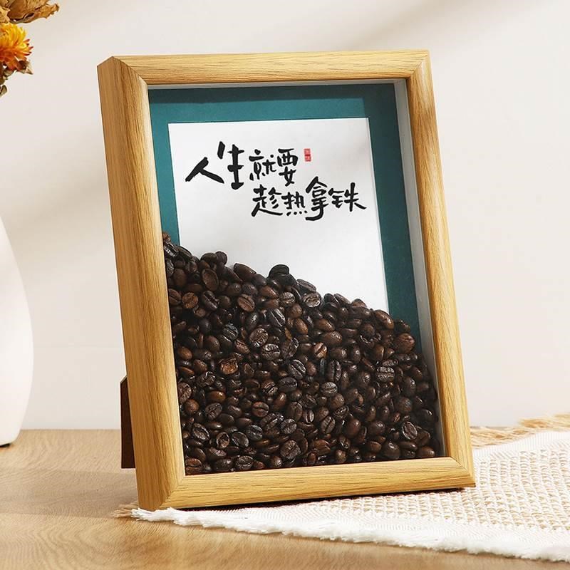 速发咖啡豆创意装小摆件相框家居店面客厅吧礼办公桌饰台物手工摆
