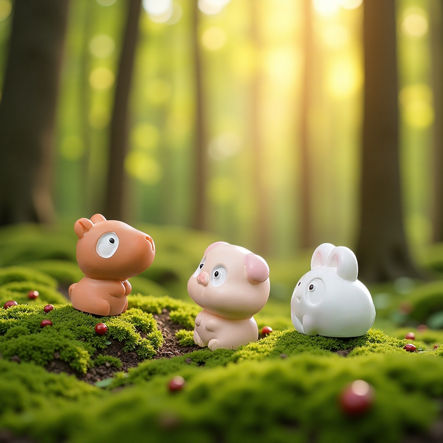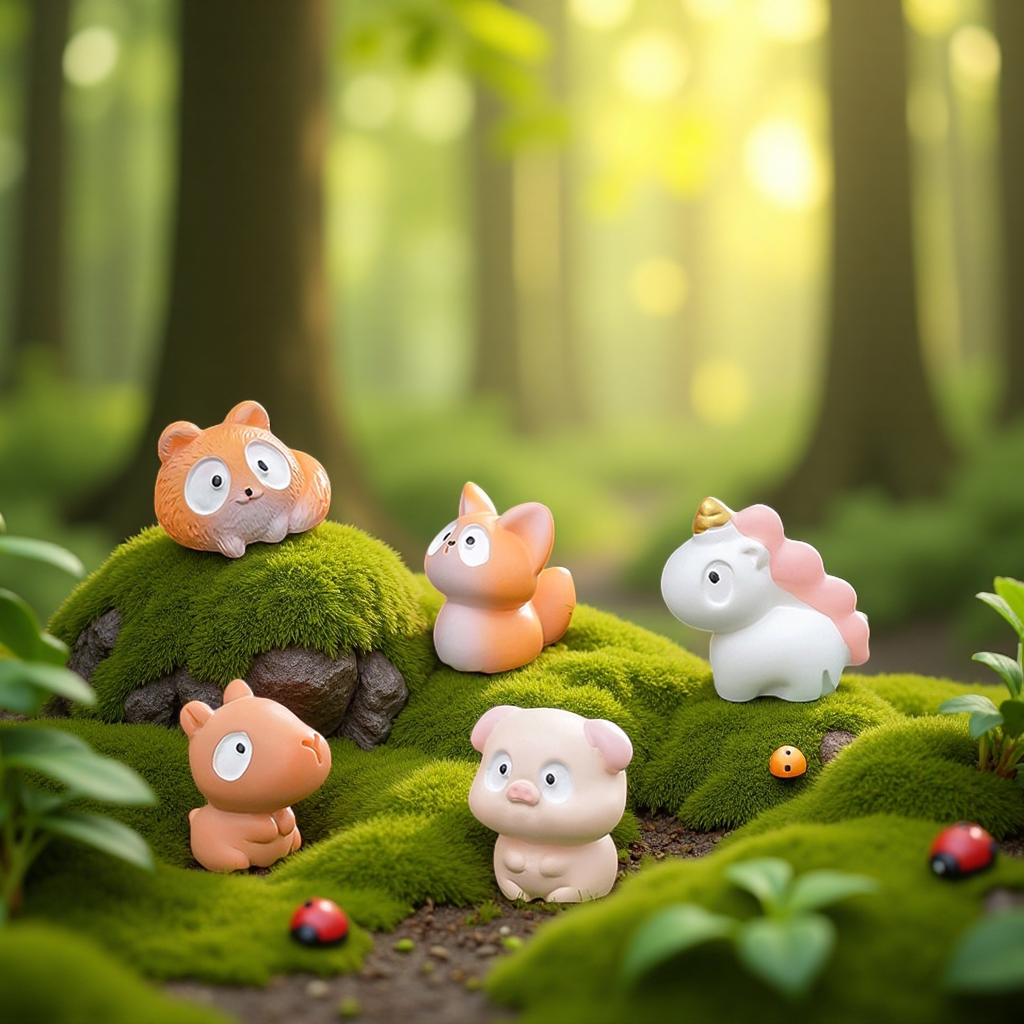 无聊了摆个呆萌大眼小猪兔猫蛇动物公仔桌面苔藓微景观迷你小摆件