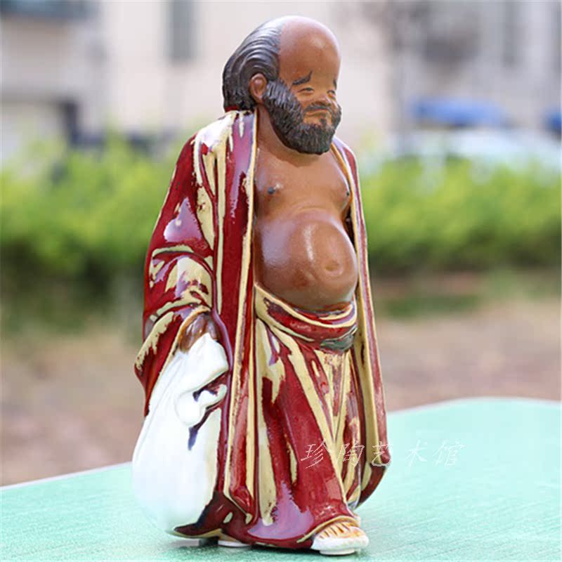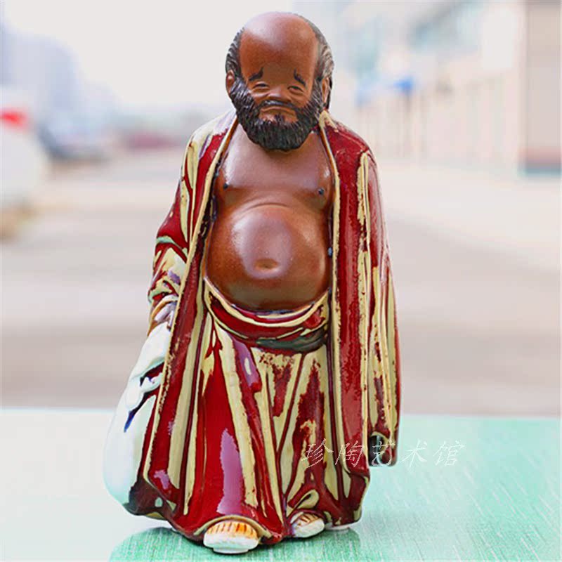摆件家居饰品布袋山人陶瓷雕塑石湾窑公仔大师制作高档精品创意