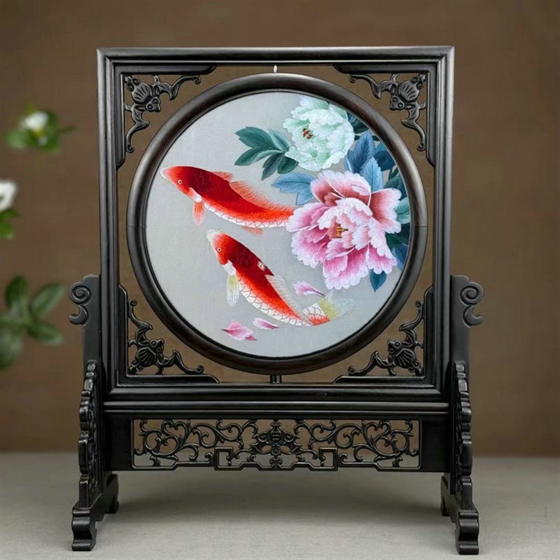 手工双面绣苏州刺绣o桌面摆件中国风工艺品客厅家居装饰乔迁礼品