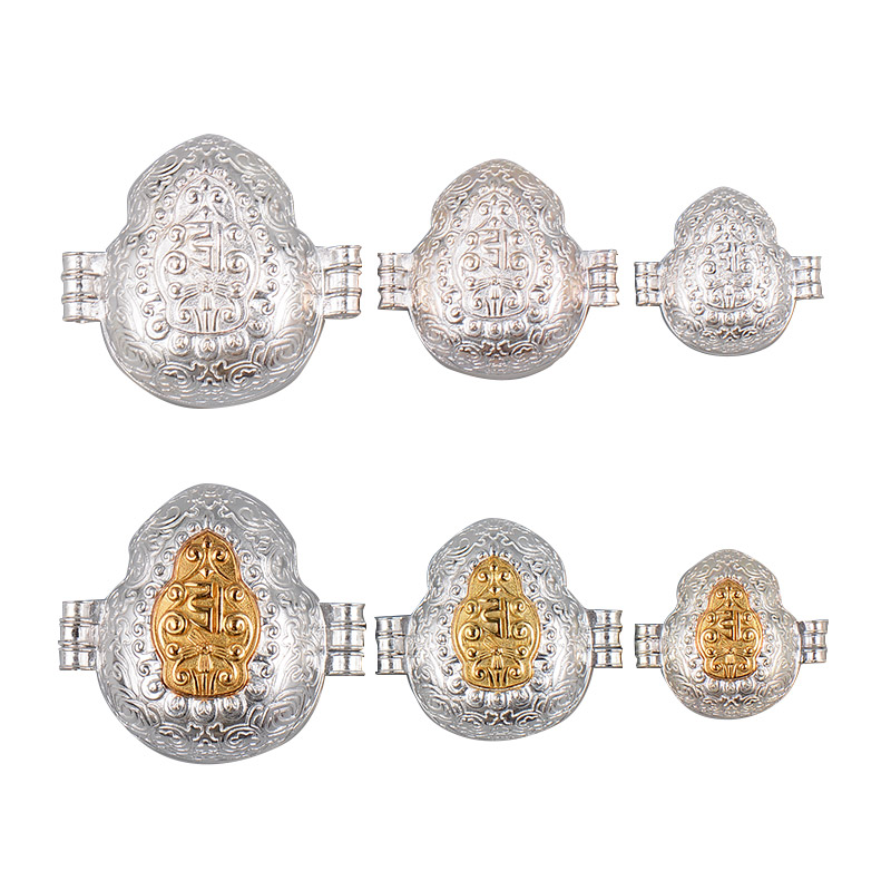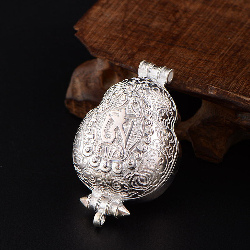 银项链嘎乌盒西藏种子字银镀金噶乌盒男女随身吊坠挂件