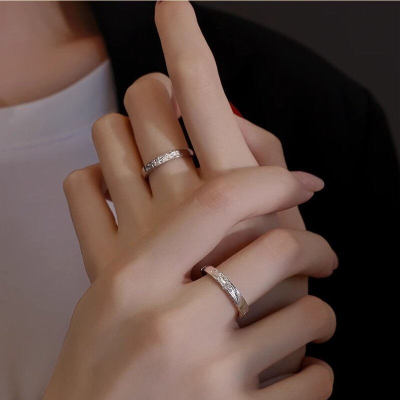 999纯银情侣戒指男女对戒小众设计时尚个性高级感食指戒520送礼物