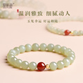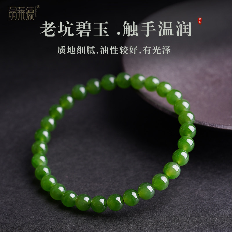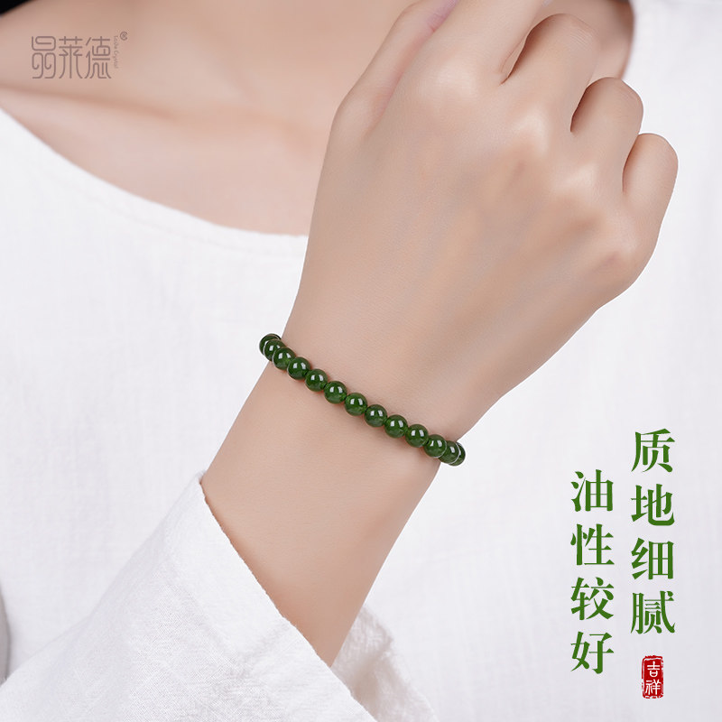 俄料老料和田玉俄罗斯碧玉手串女士菠菜绿阳绿手链冰透无黑点