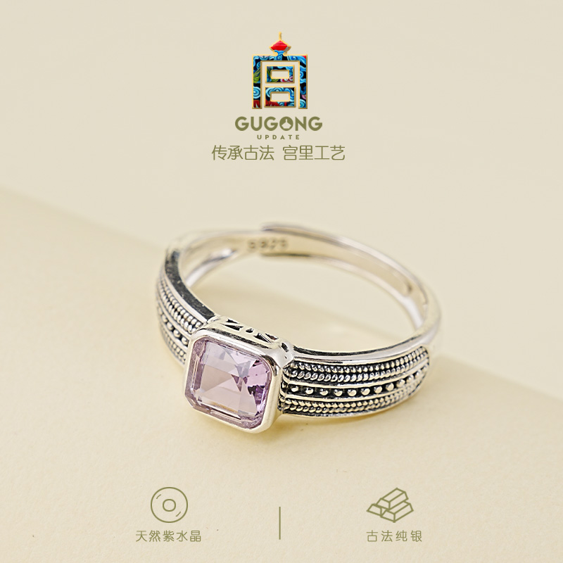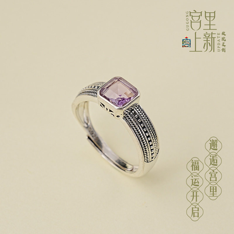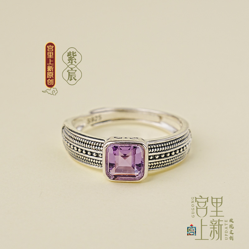 宫里上新紫水晶戒指女小众设计小方糖宝石指环紫色生日礼物送妈妈