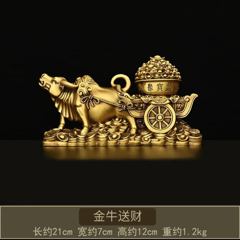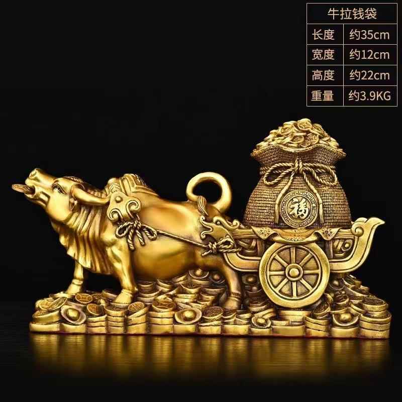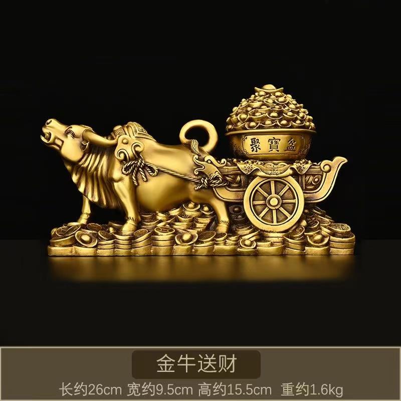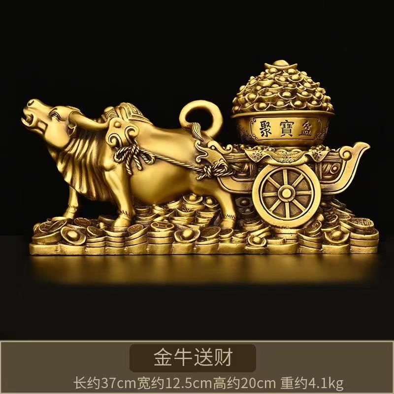 正品纯铜牛拉聚宝车盆摆金牛拉运家居装饰品财招财元件宝旺市牛工