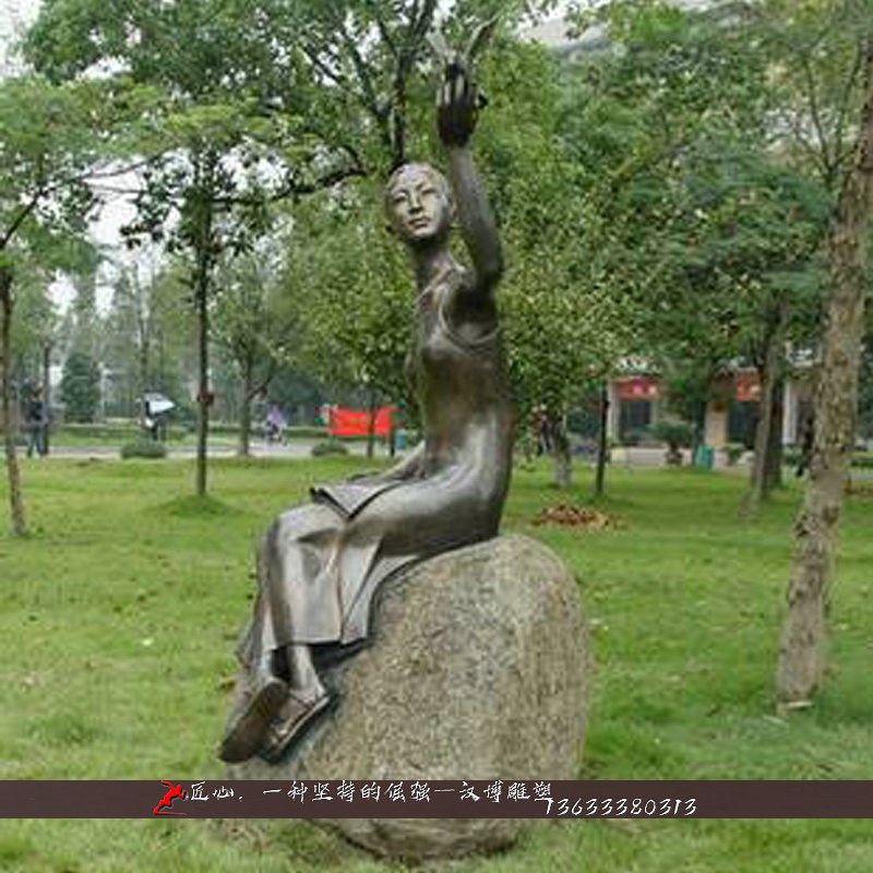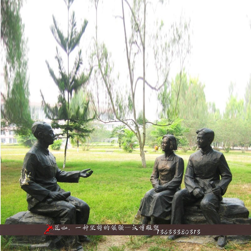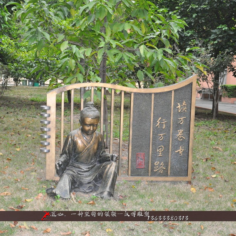 玻璃钢仿铜小孩读书雕塑校园文化广场古代小孩看书场景人像定制做