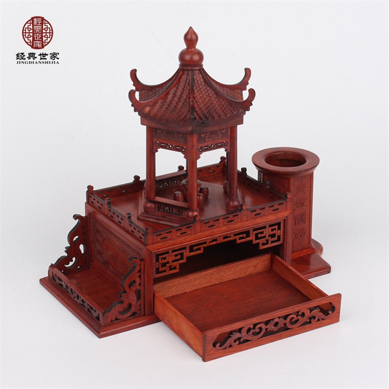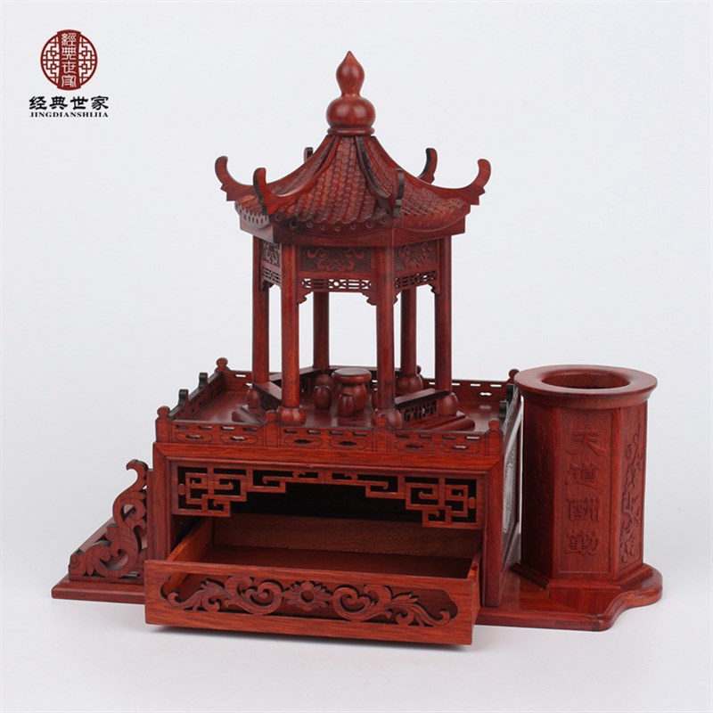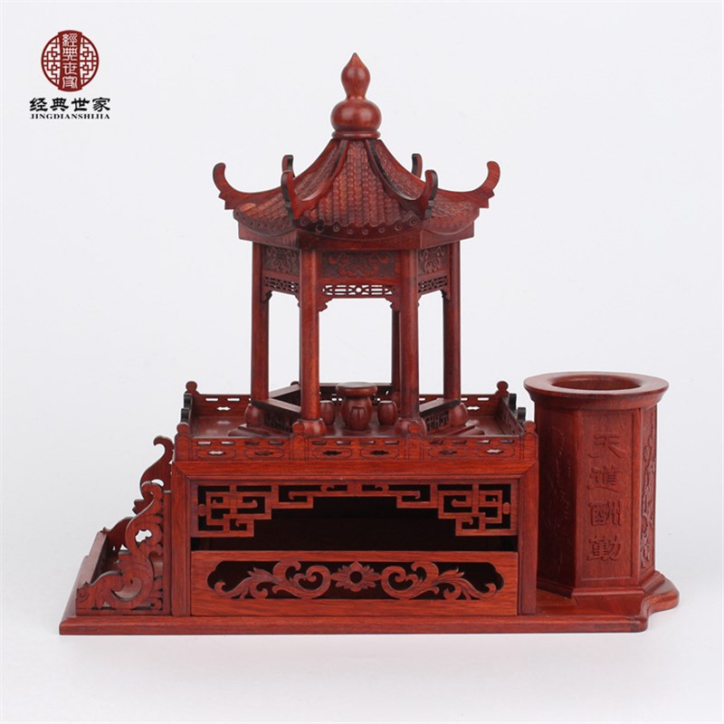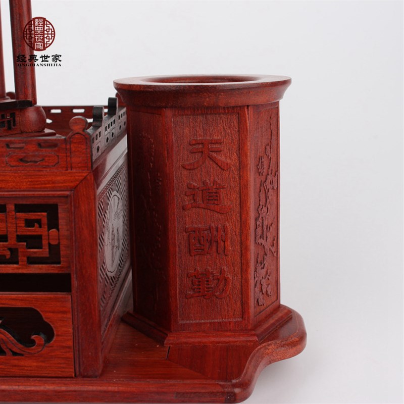 极速红木笔筒红檀木雕p摆件工艺品 实木质笔筒名片盒商务礼品 聚
