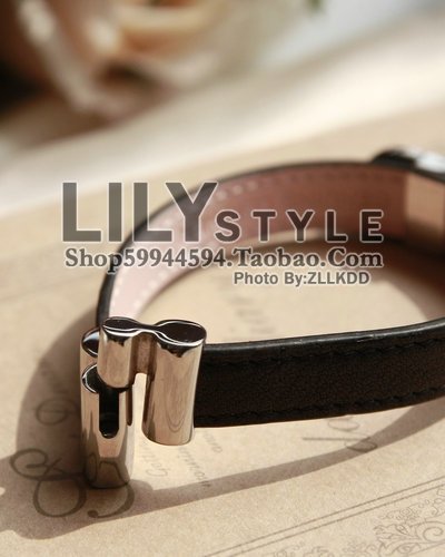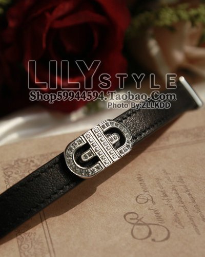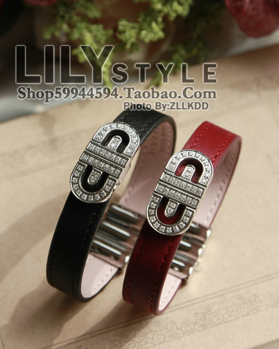 镶钻LOGO BV*RI经典款 红色黑色真皮带手链/手环/手镯 实拍银色